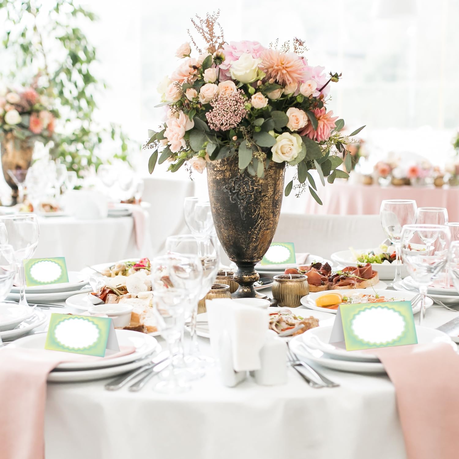 - 2)Design: Bright digital color print prevents ink smearing, beautiful and cute details will give joy and happiness of every guests and the hosts. Tent Style refer to it can be folded as a tent to stand alone or can be placed into a holder.