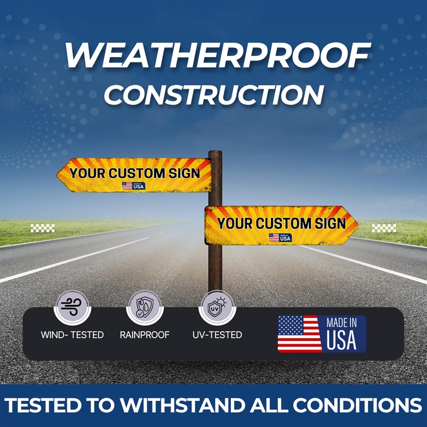 - Weatherproof Design β Withstands rain, sun, and wind for reliable long-term CUSTOM outdoor metal sign use; an excellent choice for CUSTOM road signs metal and CUSTOM street signs metal.
