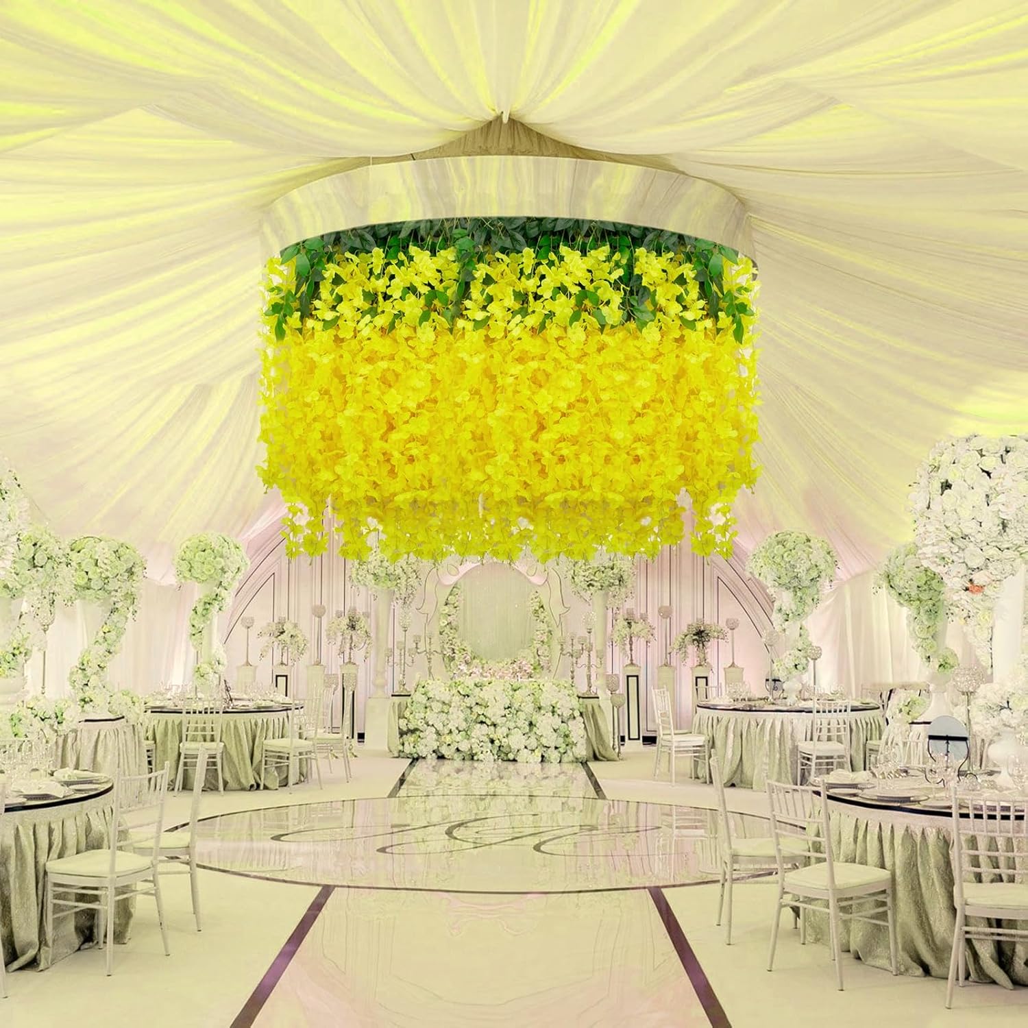 - 【Yellow Wisteria Garland】Whether you decorate beautiful yellow wisteria hanging flowers indoors or outdoors, you can achieve a magical decorative effect. Decorating the interior makes your home look full of life while decorating the exterior makes the environment more springy.