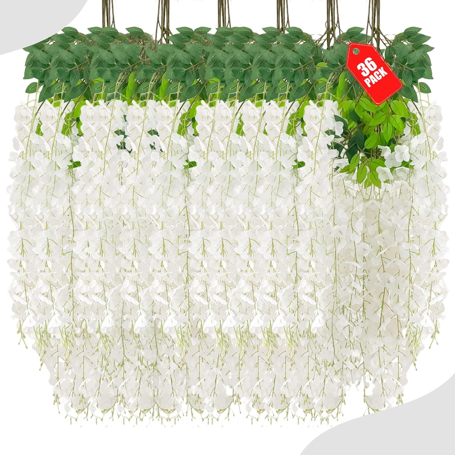 36 Pack White Wisteria Hanging Flowers, 3.44 Ft Fake Hanging Flowers, Artificial Wisteria Garland Vines for Wedding Room Backdrop Outdoor Patio Garden Decoration