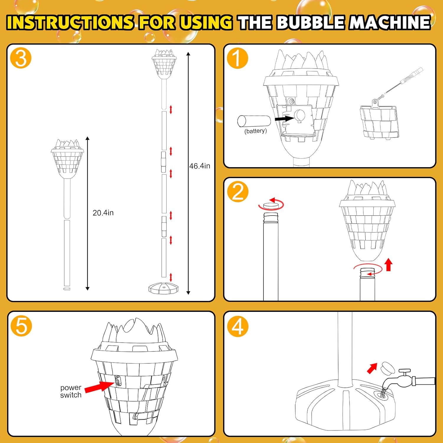 - Easy Assembly & Portable: Our bubble machine has ground stabilizers for stability; simply connect the poles, fill the base with water or sand, and youโre ready to use!Includes 3.7V 1200mah rechargeable battery.The bubble machine toy can work continuously for about 45 minutes.Simply plug them into any USB outlet on your computer, laptop, or in the car, and enjoy the convenience of hassle-free charging.its compact size and mobilizable handle make it easy for kids to carry around.