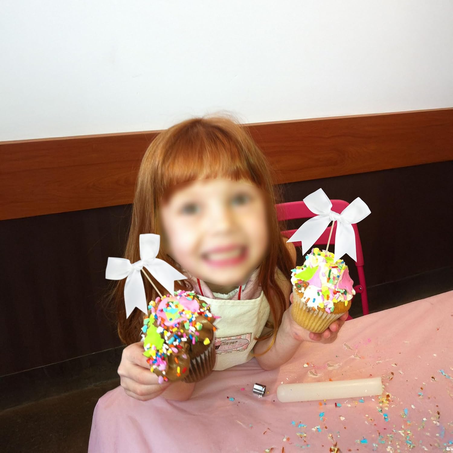 Ephlyn 24Pcs White Bow Cupcake Toppers Bow Cake Topper Birthday Decorations Mini Bowknot Cupcake Picks for Coquette Theme Party Decoration Bachelorette Bridal Engagement Wedding Party White