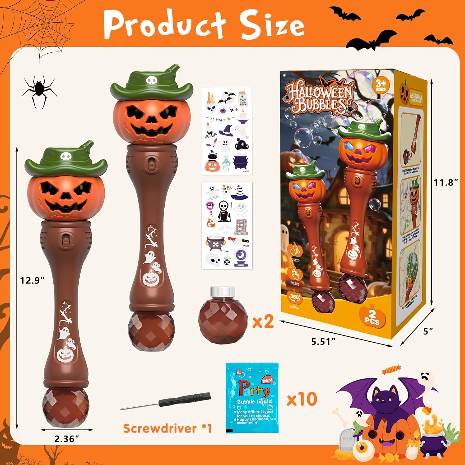- SAFE FOR KIDS: This Halloween bubble wand is made of durable ABS material, and the handle of the pumpkin wand has smooth surface with no sharp edges, making it safe and comfortable for little hands. The bubble machine set for children aged 3β5 includes two Halloween bubble wands and 10 refill packs, allowing hours of continuous play