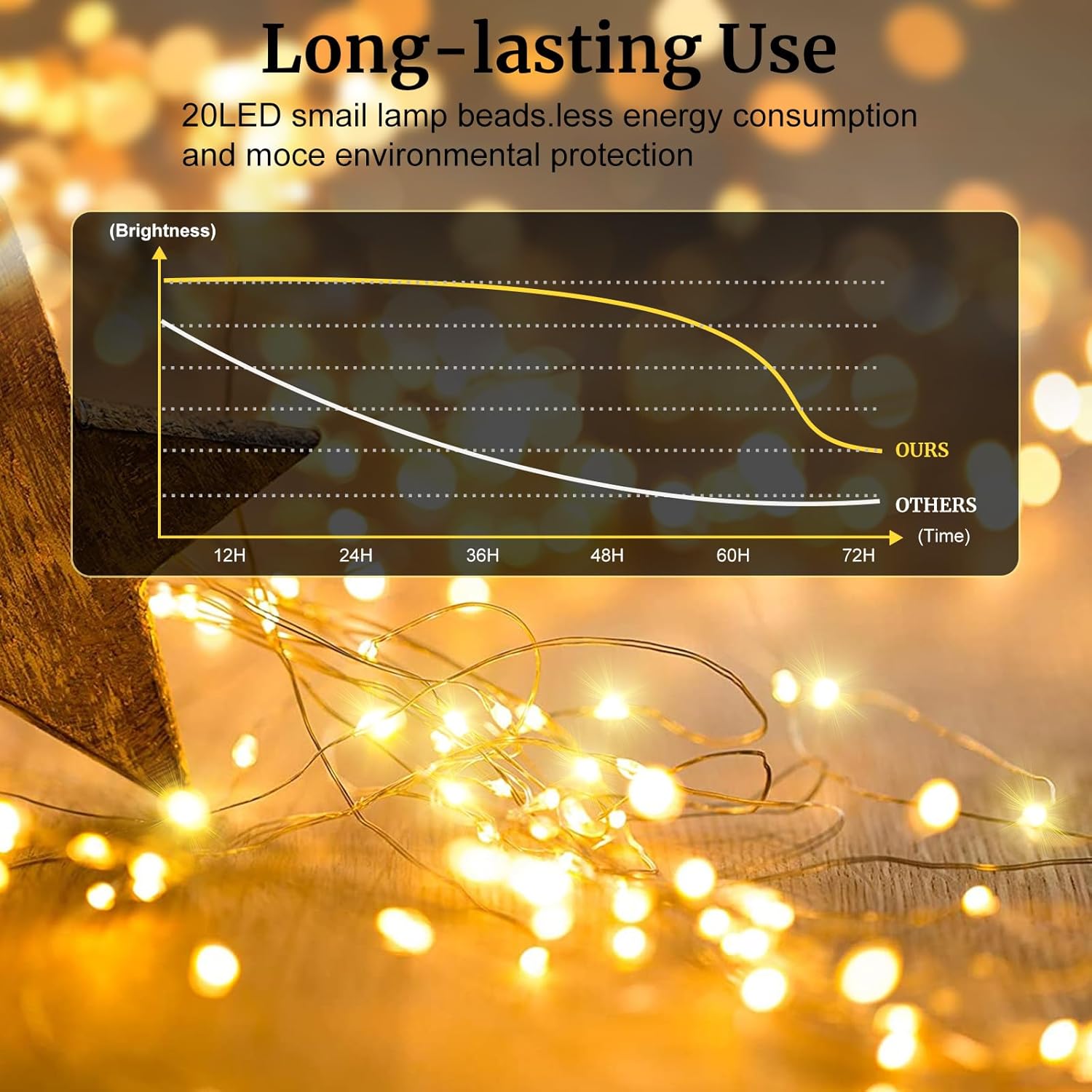 - 【MINI FAIRY WIRE LIGHTS】-- 3 LR44 batteries included in each LED fairy lights,lasting over 72 hours.7 Feet Mini Light String made of high quality silver-plated copper wire,which makes led moon lights sturdy and durable.Battery box measures 0.78*1.2in,easy to hide in all your DIY decorating projects.