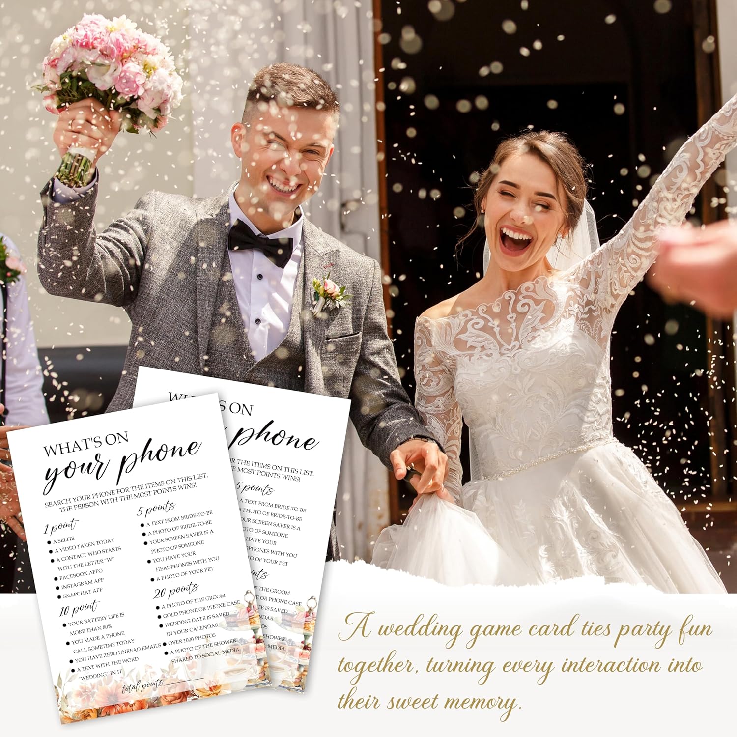 Fall Bridal Shower Games Cards, What's On Your Phone Wedding Bachelorette Party Games, Fall in Love Bridal Shower Decorations, 25 Cards, G10