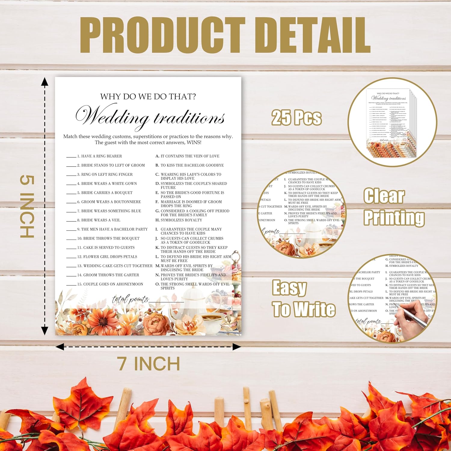 - Dimension: Generous 5"x 7" size with ample writing space, perfect for wedding party and guest activities.