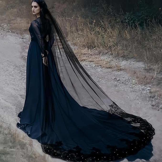 Bridal Veil long Cathedral Length Lace Sequins Edge 1 Tier Wedding Veil with Metal Comb for Brides