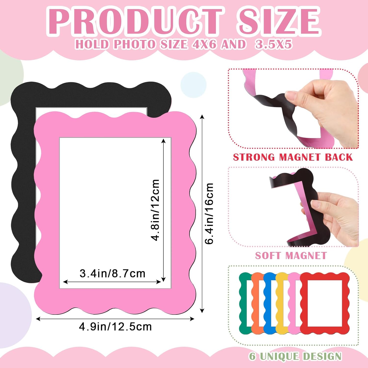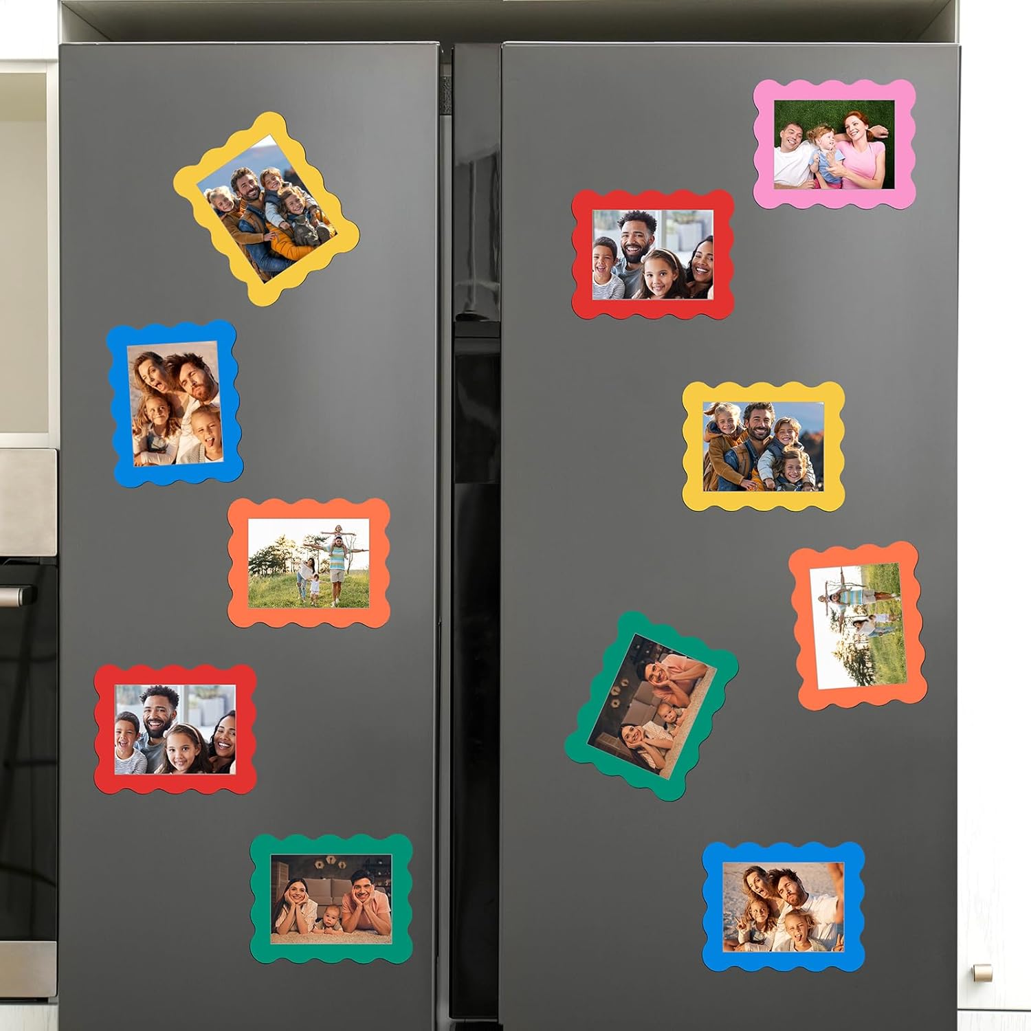 - Vibrant Diversity in Every Set: this collection of scalloped magnetic picture frames offers a delightful spectrum of 6 vibrant colors, with 12 pieces in each package; Each hue brightens your refrigerator, providing a personalized touch that complements any decor