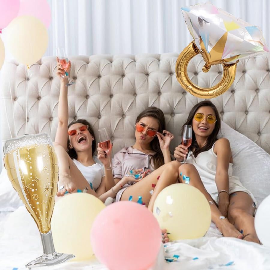- 【Bridal Shower Set】You will receive: 1 x glitter silver bride to be sash(31.5in), 1x layer veil(30in), 1 x diamond ring foil balloons(26x24in), 1 x champagne glass foil balloons(36x17in). This bridal shower set will be the most beautiful accessory for bride to be and the most thoughtful gift for her