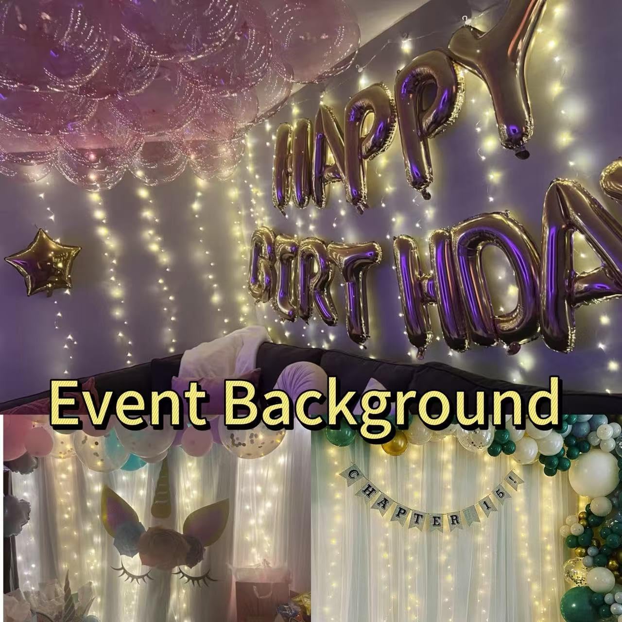 - 【Fairy curtain string light】Fairy Curtain Lights LED tapestry light set includes 1 piece 9.8 x *9.8 feet curtain light which is composed of 300 bright LEDs, USB port and hooks for easy hanging, 1pieces remote control, warm white curtain light will make you feel warm and romantic, you can use it as curtain lights, it will give your room a light up effect and the good ambience