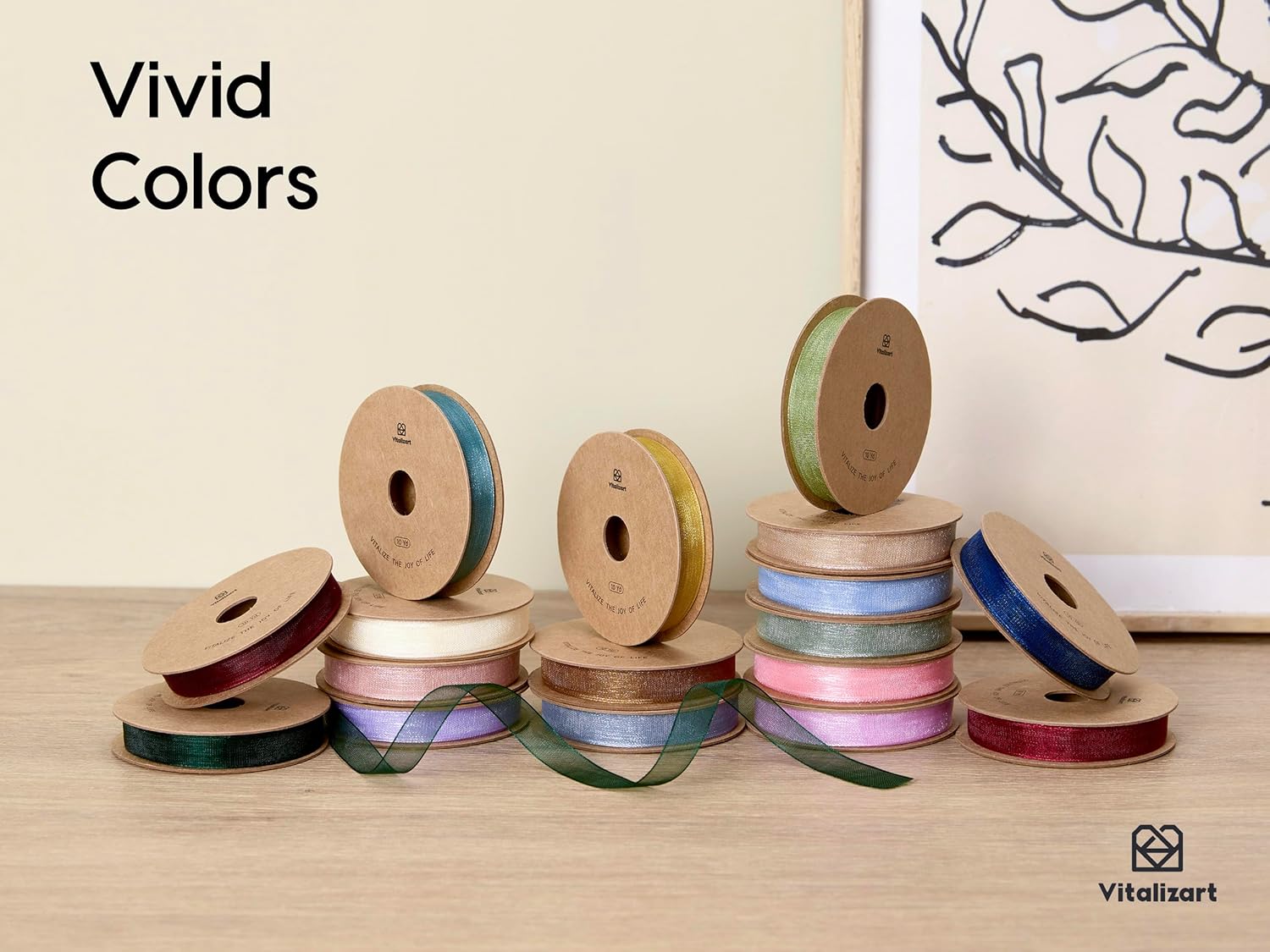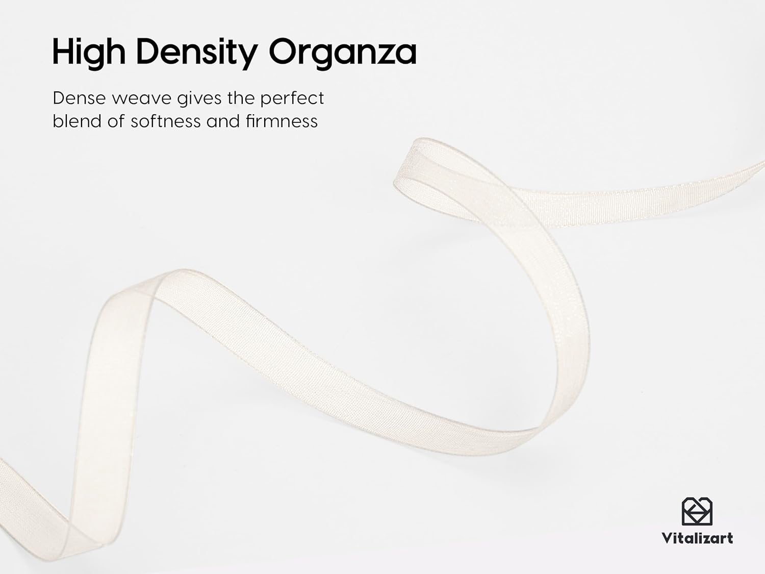 Vitalizart 3/8" x 30Yd Organza Ribbon Cream White Sheer Ribbons Set 10 Yd x 3 Rolls Ivory Handmade Eco-Friendly for Gift Wrapping Christmas Tree Crafts Bows Wedding Invitations Wreaths