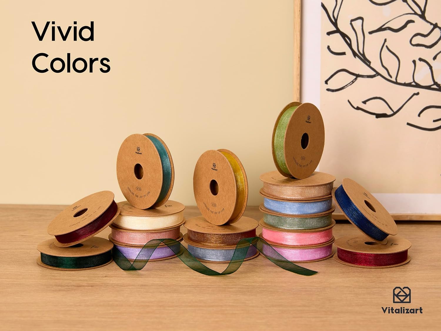Vitalizart 3/8" x 30Yd Organza Ribbon Green Sheer Ribbons Set 10 Yd x 3 Rolls Drak Green Sage Handmade Eco-Friendly for Gift Wrapping Christmas Tree Crafts Bows Wedding Invitations Wreaths Wrap