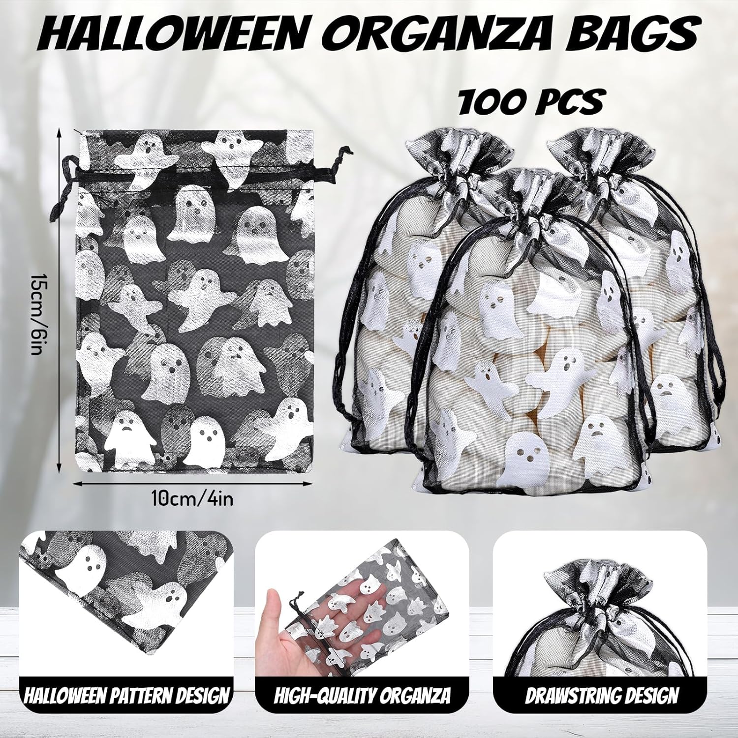 - Large Quantity: This package includes 100 pieces Halloween organza bags, all in same design, enough quantity for your party decorations and replacement