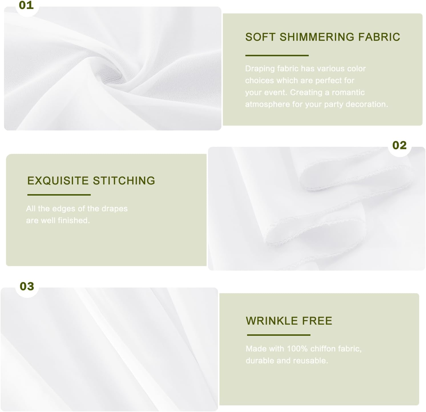 Wedding Arch Draping Fabric 29" x 18 FT White Sheer Chiffon Outdoor Curtain Drapes for Wedding Birthday Party Ceremony Decor(2 Panels, White)