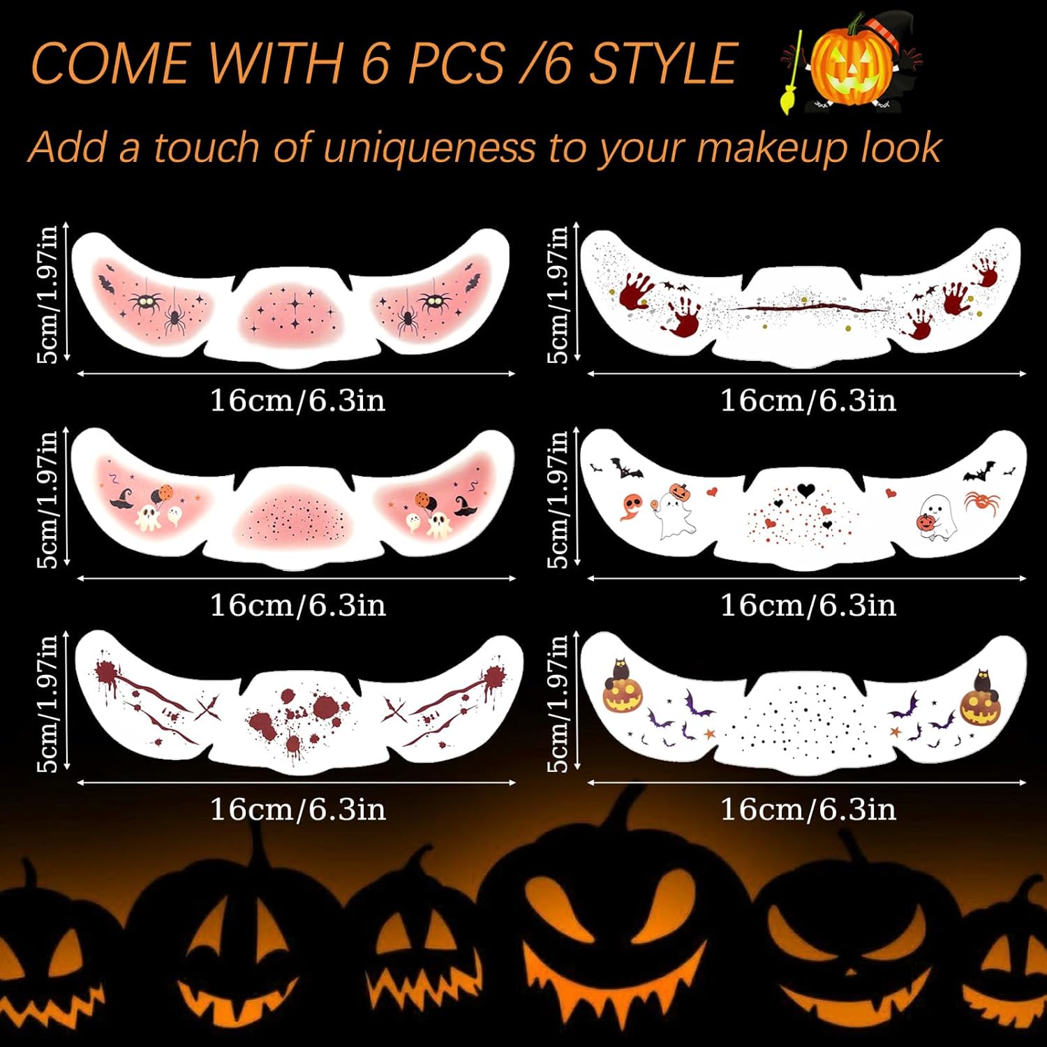 Glitter Freckles, 24PCS Glitter Freckles Face Tattoo, Sparkle Freckles for Women, Waterproof Gold Temporary Face Tattoos Glitter Glow Up Patches Makeup Patches (Halloween 6pcs)
