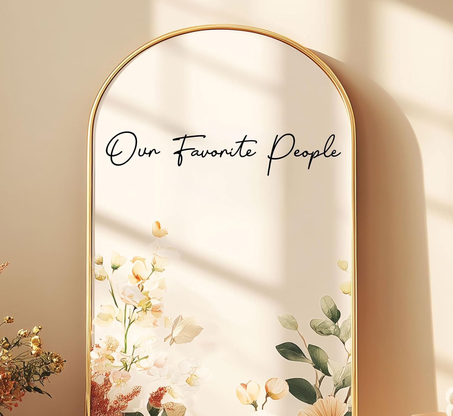 - Elegant Wedding Seating Chart Decal - Add a personal and sophisticated touch to your wedding decor with this "Our Favorite People" seating chart header decal. Perfect for your wedding mirror, it creates a warm and inviting atmosphere for your guests.