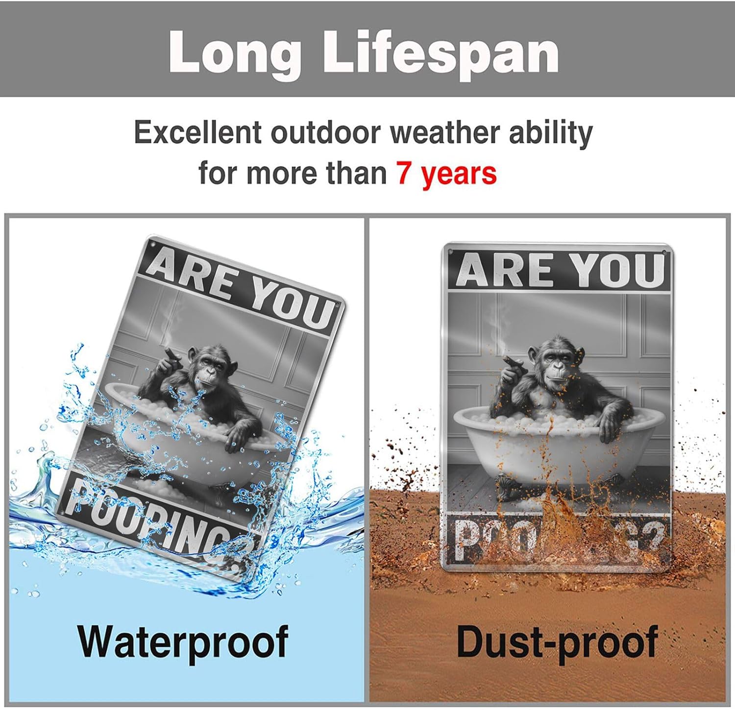- 【Humorous Bathroom Wall Art】:Add a touch of humor to your bathroom with this funny chimpanzee soaking in a bathtub. Perfect for guests to giggle at and spark conversation!