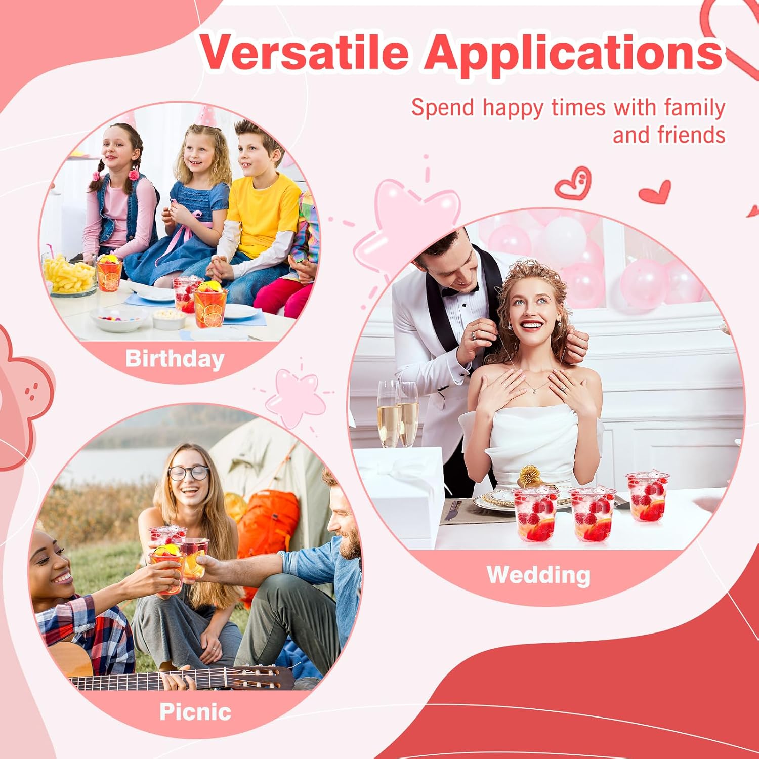 - Adequate Quantity: You will get 100 Sets 12oz pink plastic cups. Each pink cups is sized at 3.66" x 3.5", ensuring you have plenty on hand for parties and daily use. Our plastic wine glasses are perfect for serving cocktails, whisky, or wine.