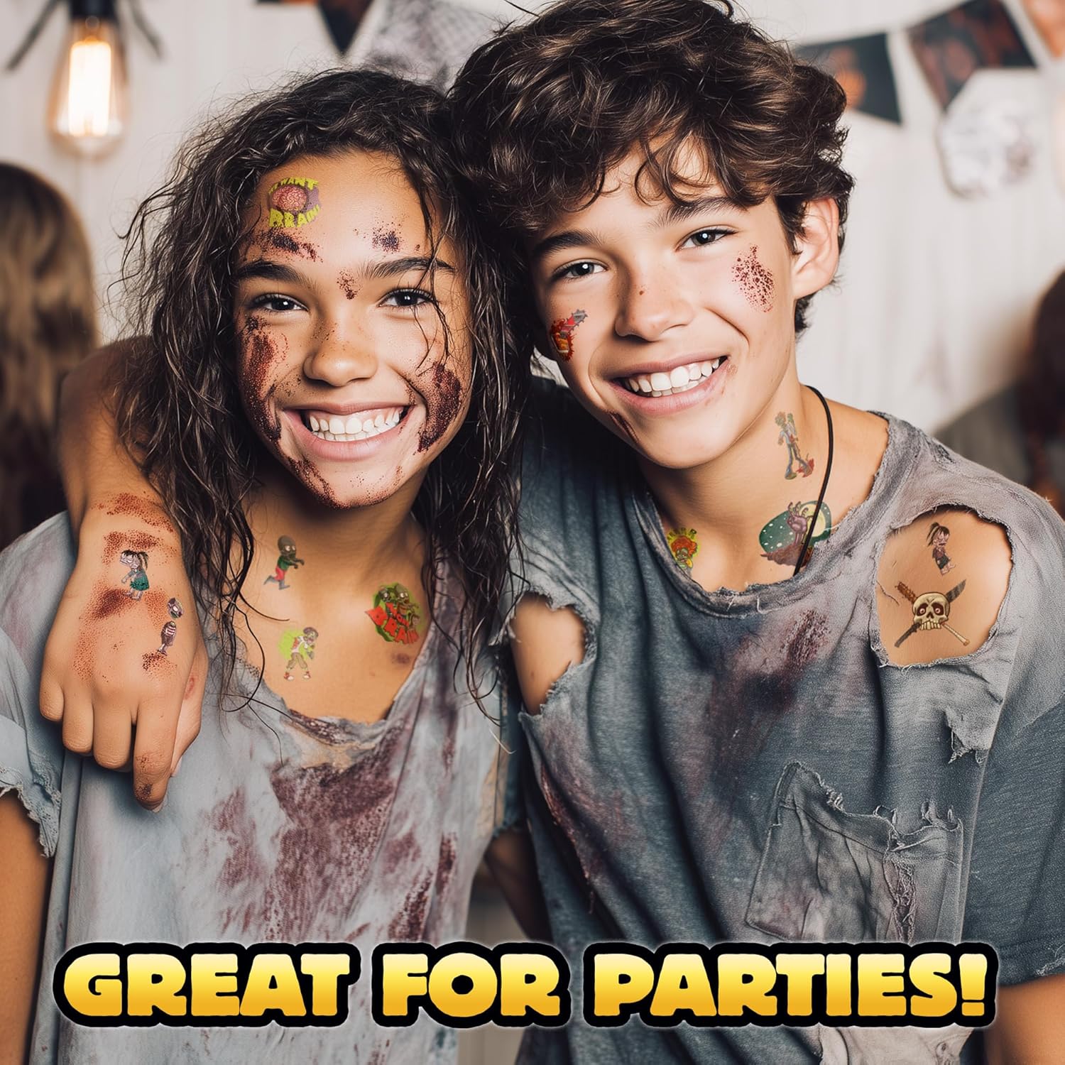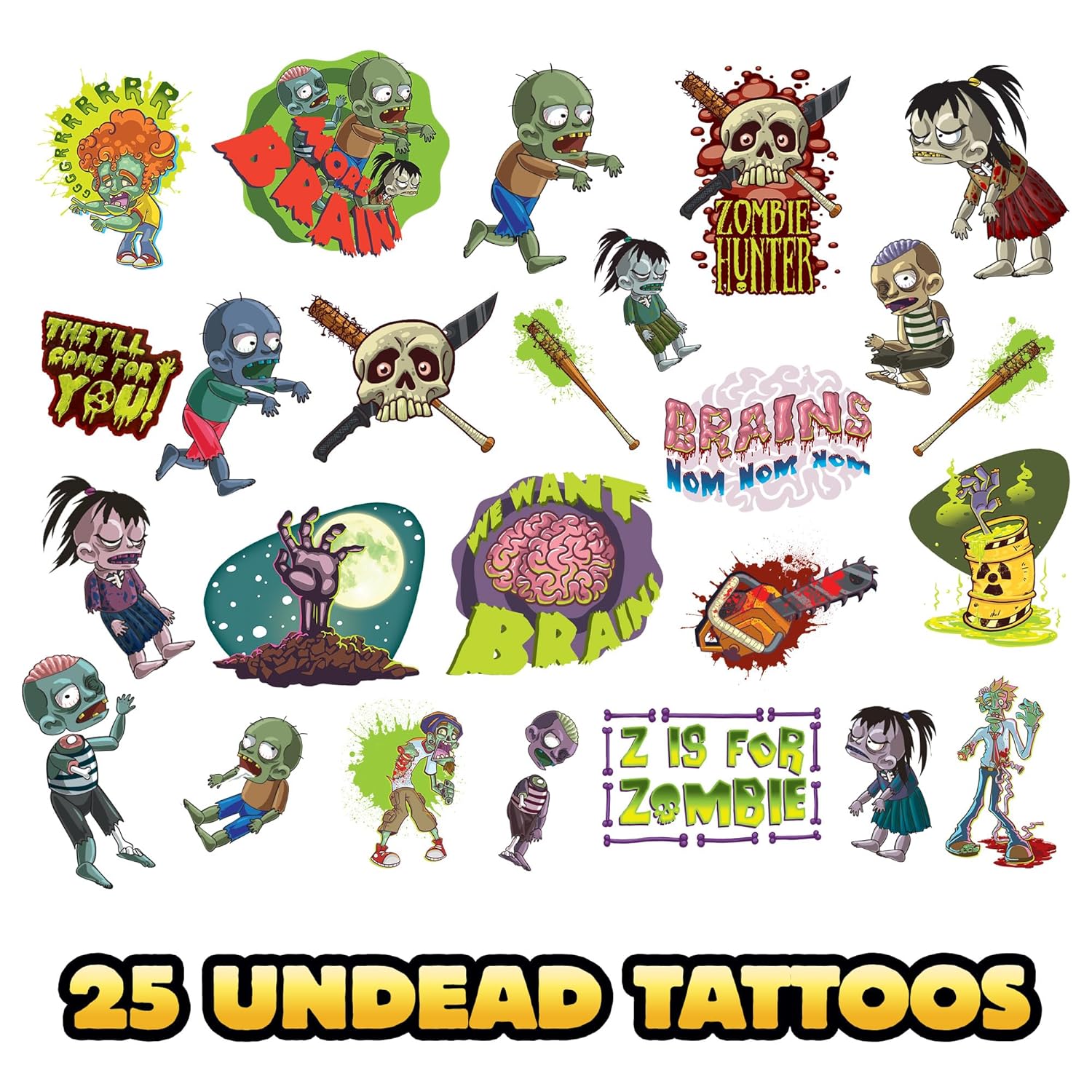 Zombie Halloween Tattoos Variety Pack – 25 Pack of Scary Temporary Tattoos for Kids & Adults, Fake Wounds, Blood, Stitches, Rotting Skin, Party Favors & Costume Makeup