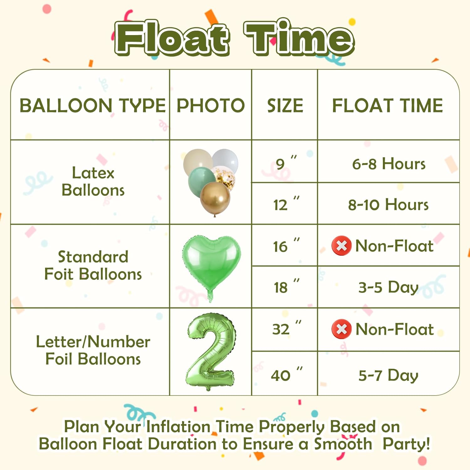 - Avocado Green Latex Balloons Set: 50 Pieces,12-inch (Uninflated - Inflate to 9 inches),2.8g per balloon.14pcs avocado green balloons, 14pcs beige balloons, 8pcs sand white balloons, 7pcs metallic gold balloons, 7pcs gold confetti balloons.