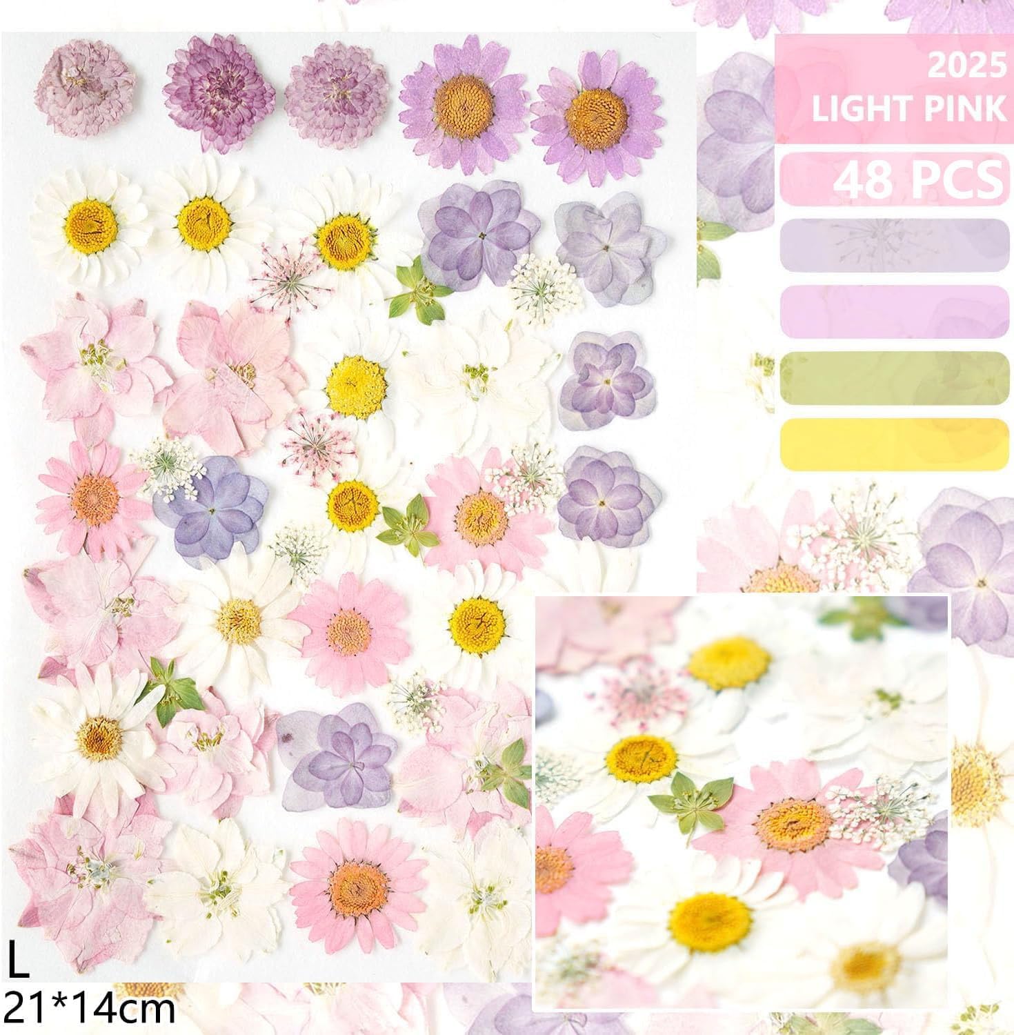 - 🌼Made of natural flowers and leaves, thus each piece varies slightly in size and shape.Each package contains 10+ types of plant materials. total about 48 pcs.