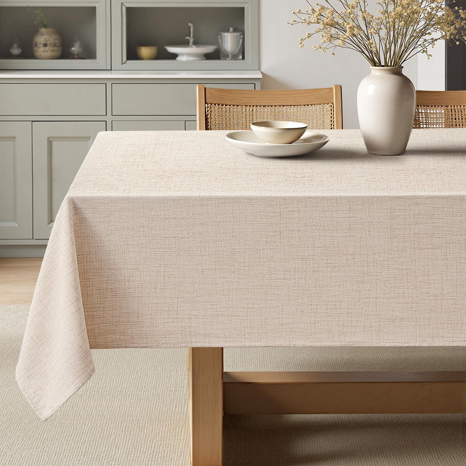 MIULEE Ivory Linen Tablecloth 60x120 Inch Rectangle Table Cloth Waterproof,Stain Resistant & Wrinkle Resistant for Dining Party Wedding