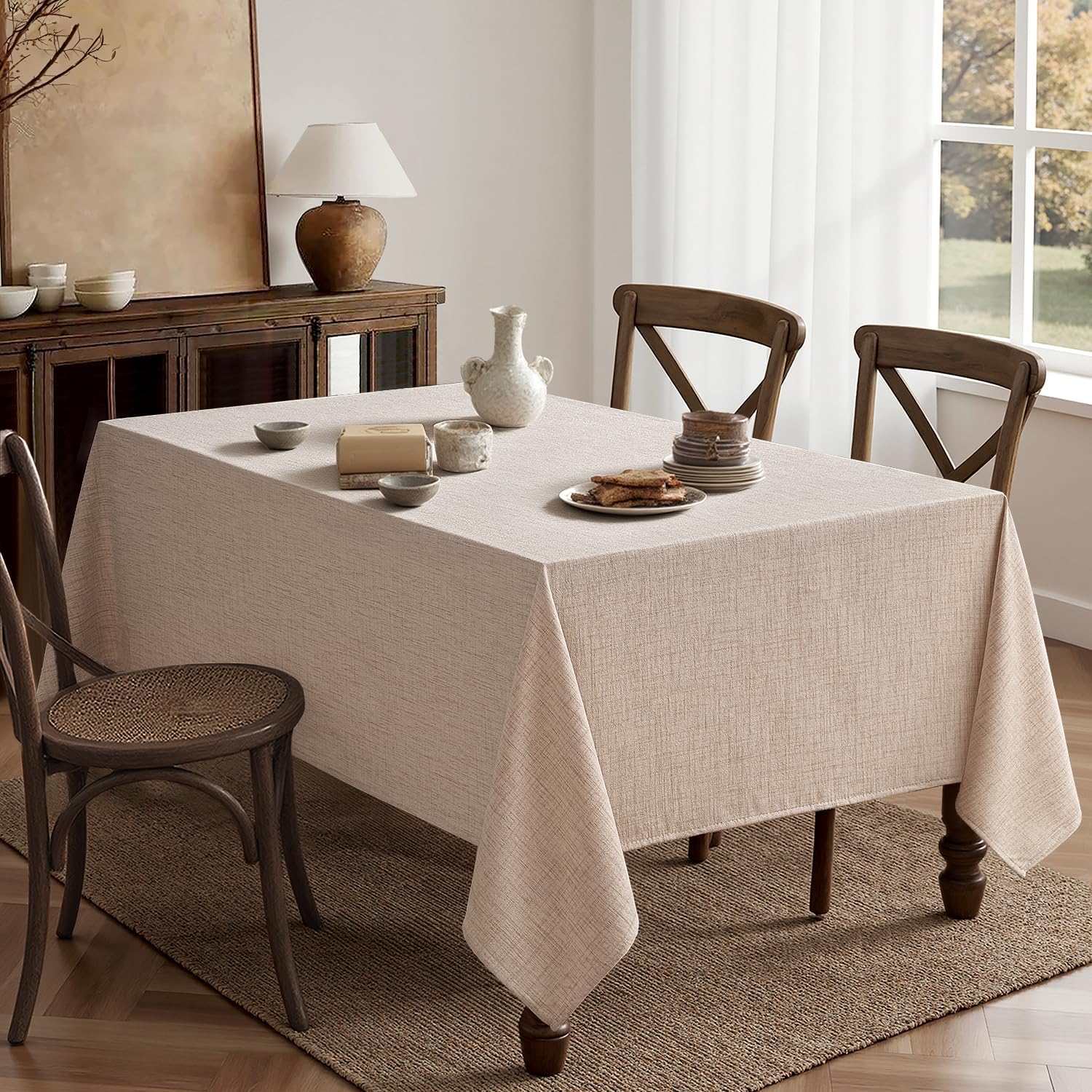 MIULEE Natural Linen Tablecloth 60x120 Inch Rectangle Table Cloth Waterproof,Stain Resistant & Wrinkle Resistant for Dining Party Wedding