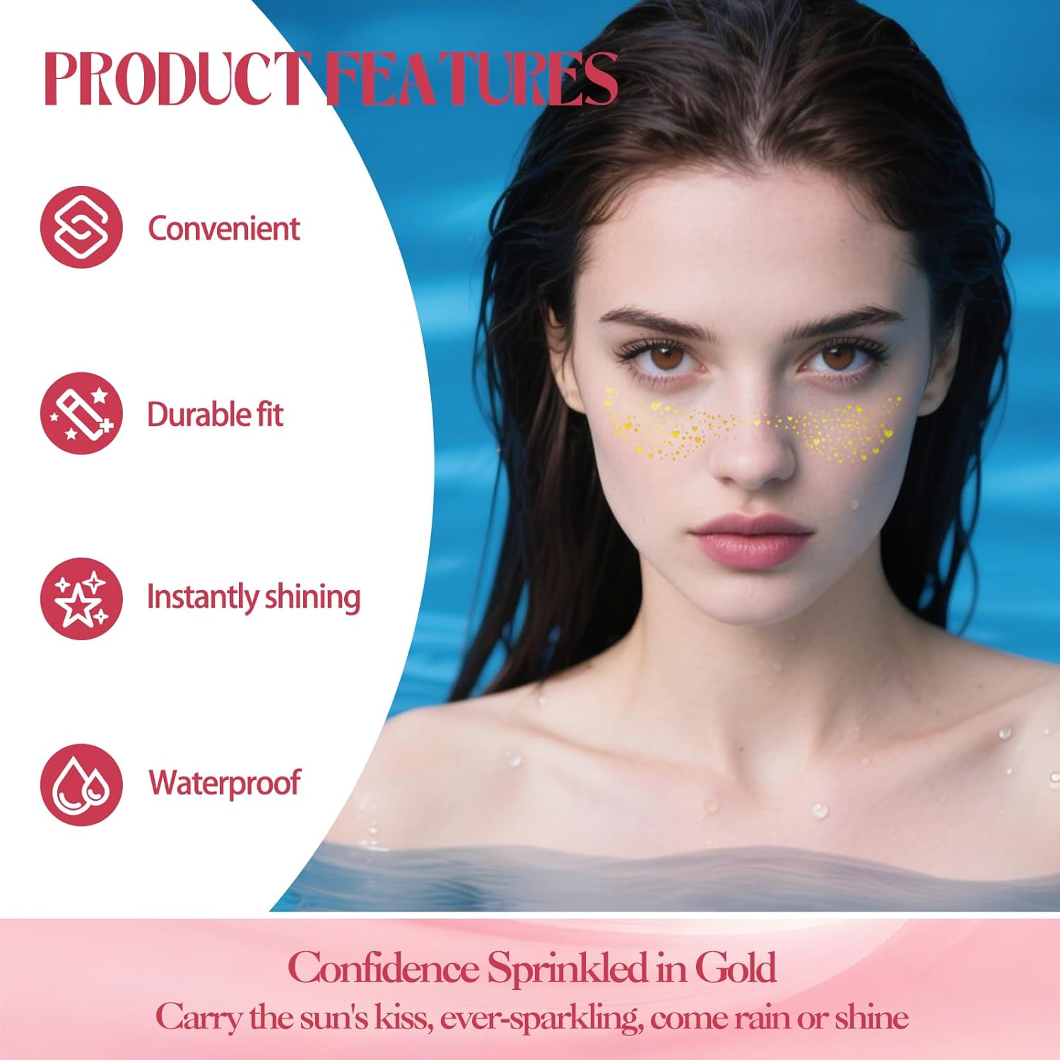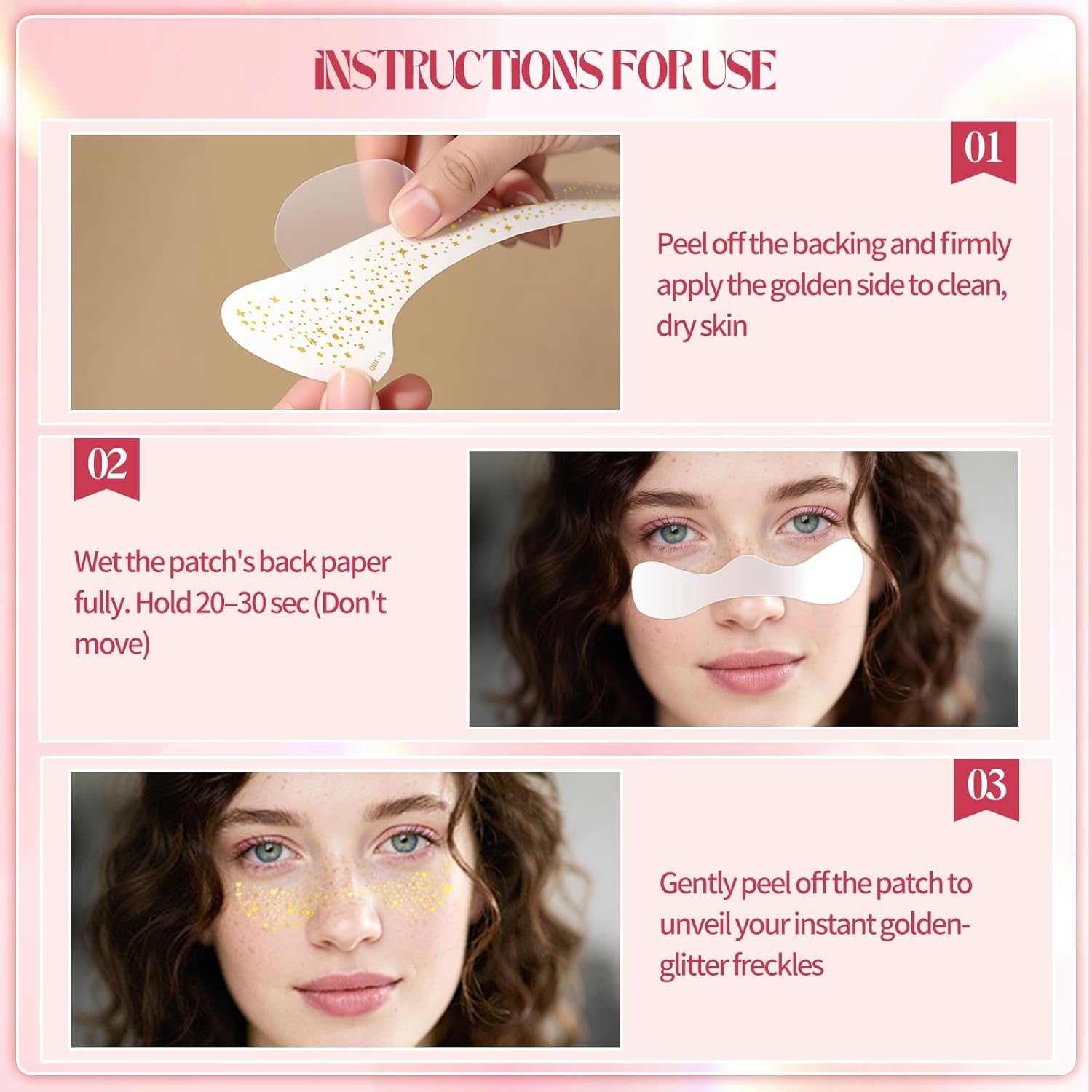 - [Easy Application & Long-Lasting Sparkle Freckle Design] Achieve a stunning look in seconds! Simply peel, apply to skin, press gently with a damp cloth, and reveal beautiful glitter freckles. These waterproof and sweat-proof face glitter patches stay vibrant all day, from festivals to parties.