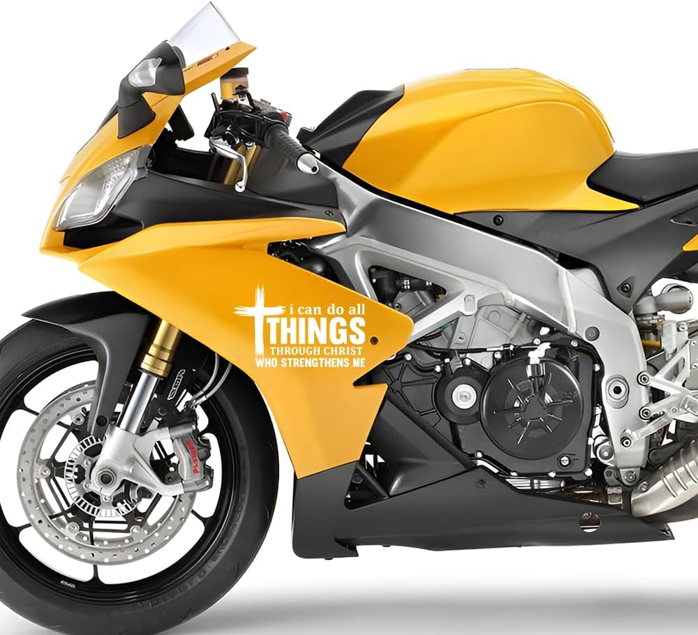 - Bible Verse Faith Sticker: Features Philippians 4:13 – “I can do all things through Christ who strengthens me” – in bold white vinyl. A timeless reminder of strength and faith for believers of all ages.