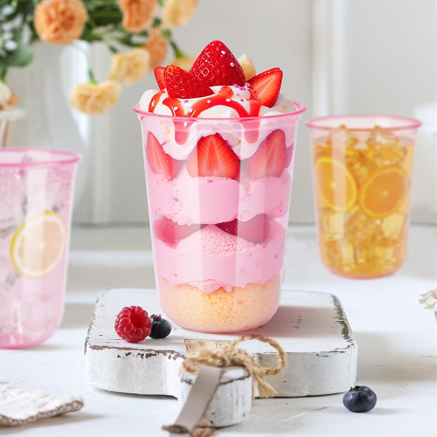 - Easy to use: our plastic stemless wine glass is applied to hold a variety of hot and cold drinks, such as juice,, milk tea, coffee, sorbets,,ice cream,yogurt,lemonade, champagne, beer,Cocktail.Your dessert or drinks will appear more delicate and delicious in these crystal clear containers.