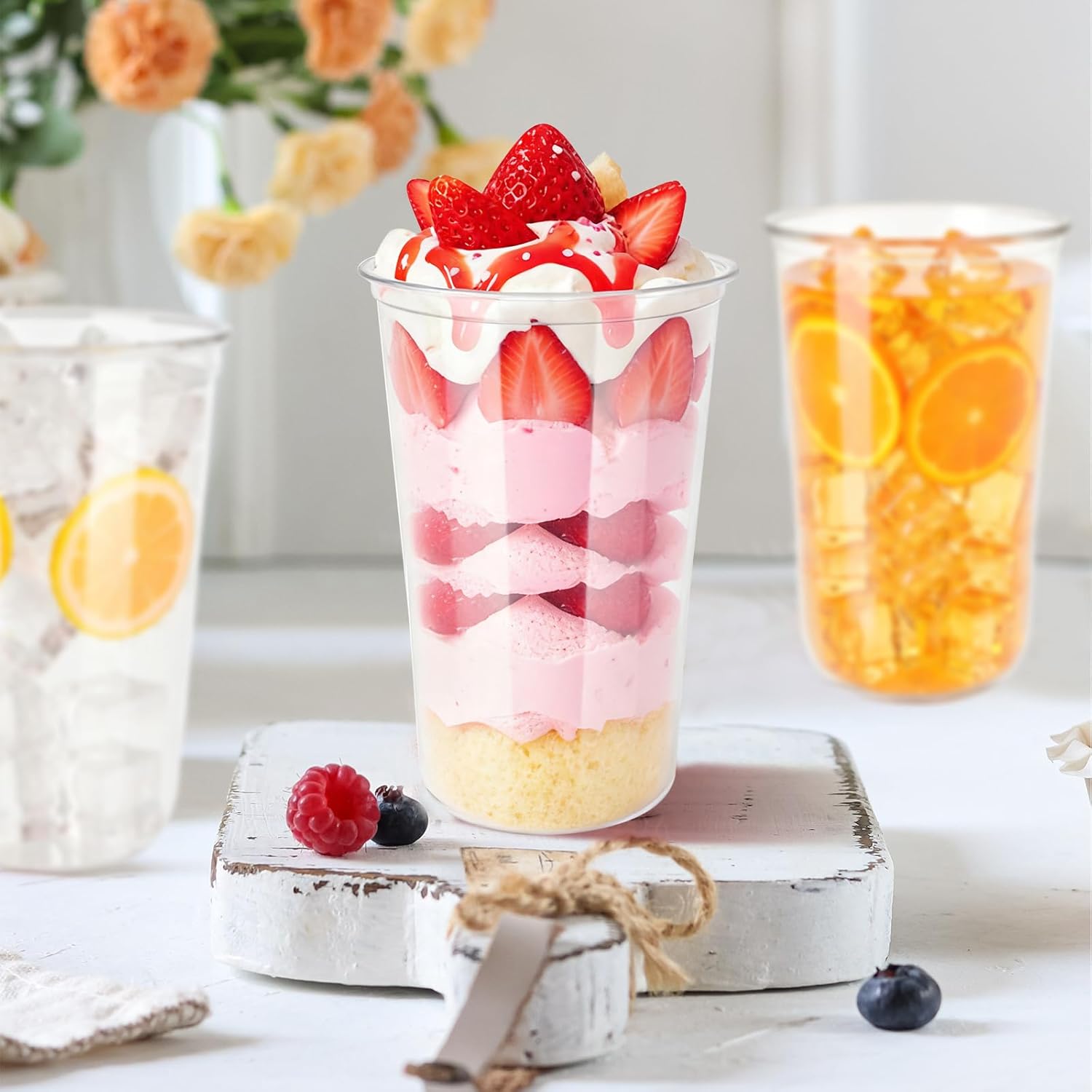 - Easy to use: our plastic stemless wine glass is applied to hold a variety of hot and cold drinks, such as juice,, milk tea, coffee, sorbets,,ice cream,yogurt,lemonade, champagne, beer,Cocktail.Your dessert or drinks will appear more delicate and delicious in these crystal clear containers.