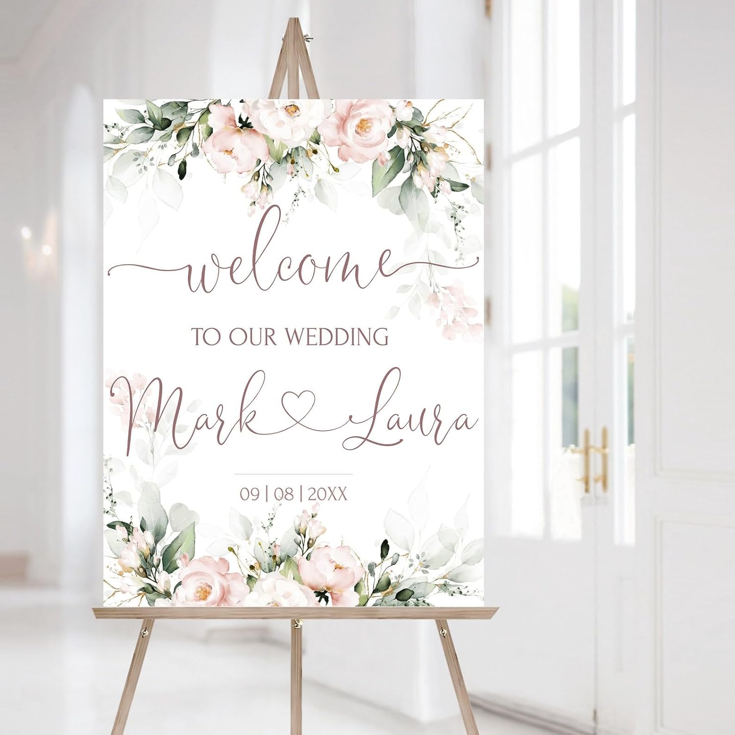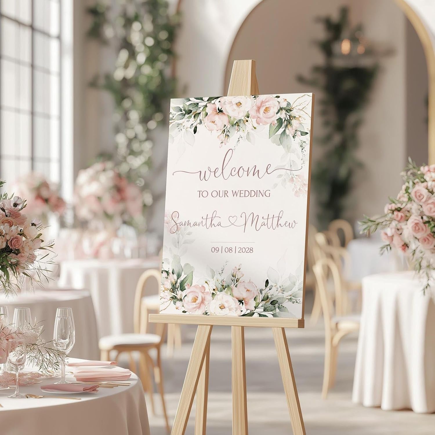 Welcome Wedding Signs, Soft Blush Pink Wedding Sign Decorations Signage 12" X 18" (Small), 27" (Medium), 36" (Large), Plastic, Modern, Pole Mount, Weather