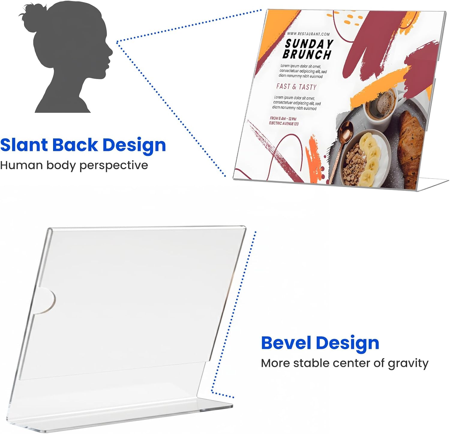 Acrylic Sign Holder 8.5 x 11 Horizontal , Clear Plastic Display Stand for Tabletop, Acrylic Stands for Flyers, Table Paper Holder, Vertical Sign Holder 8.5x11 for Restaurants, Office and School (Slant 6 Pack 11x8.5)