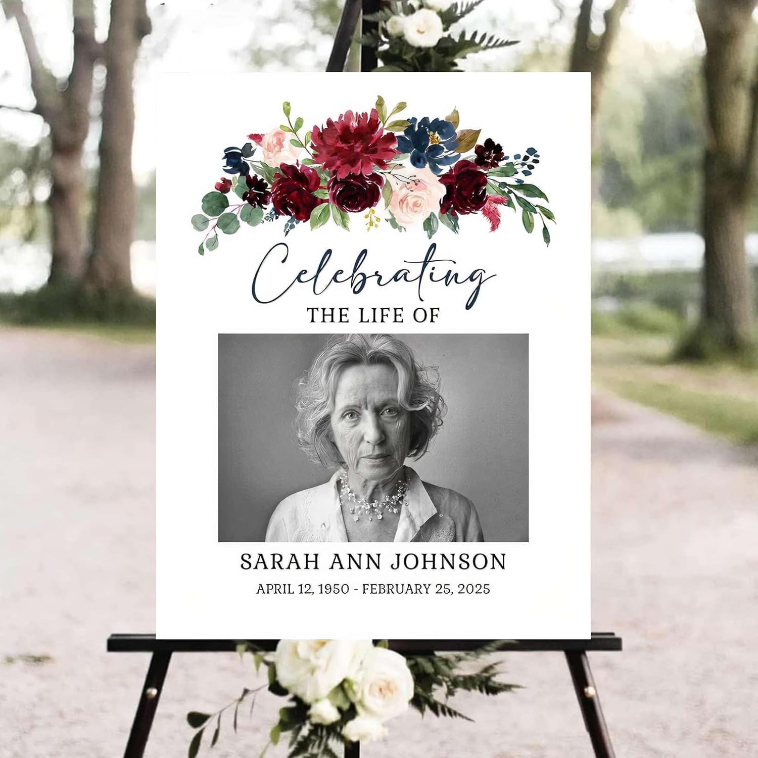 - π Elegant Memorial Design β Soft tones and classic floral accents create a warm, respectful welcome for funeral or memorial guests.