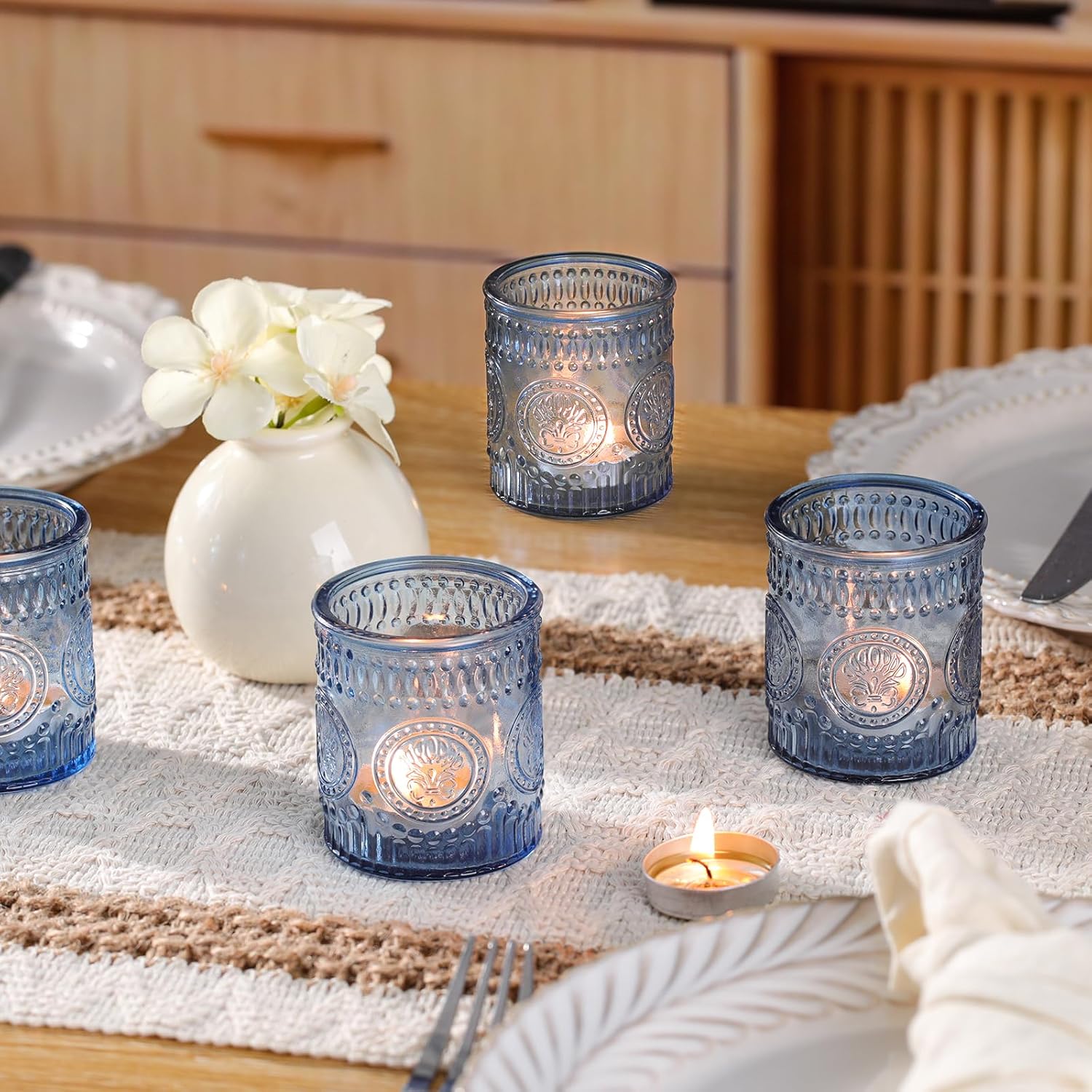 - Versatile Applications: These blue glass tealight holders are instant showstoppers, stealing the spotlight wherever they are placed. Designed for year-round use, they are a wonderful addition to casual dinner parties, holiday gatherings like Christmas and Thanksgiving, and even milestone celebrations. As exquisite ornaments, their gentle glow creates just the right ambiance—be it a relaxed night in, a romantic dinner for two, or a curated seasonal setup—making them a versatile choice for any moment that calls for warmth and charm