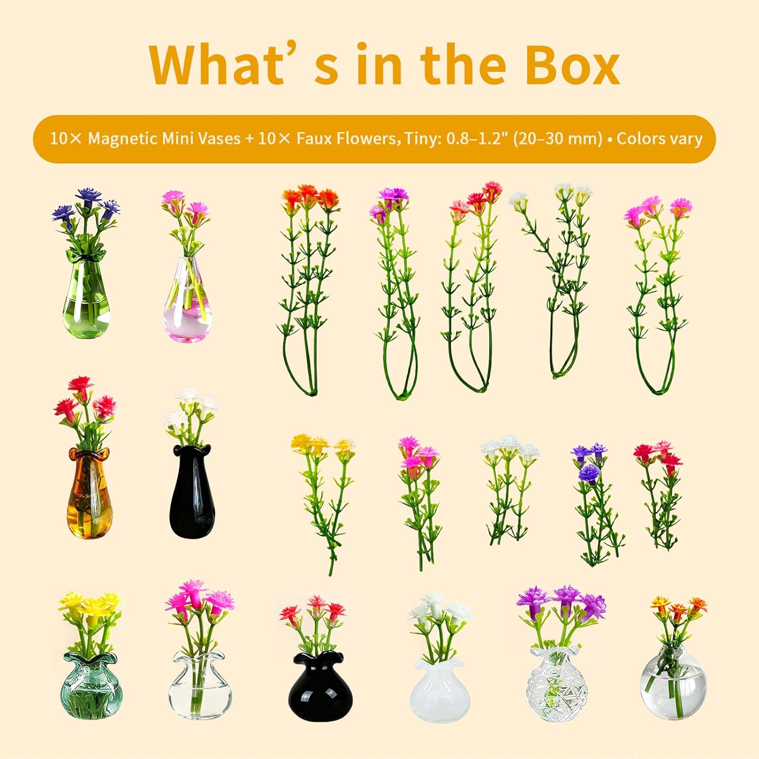 - VERSATILE DECOR & FUNCTION – Use them to display fresh blooms, dried flowers or faux greenery on your refrigerator, metal filing cabinet or whiteboard. Their strong magnets turn any metal surface into a vertical garden while adding a warm, welcoming touch to your kitchen, office, or classroom.