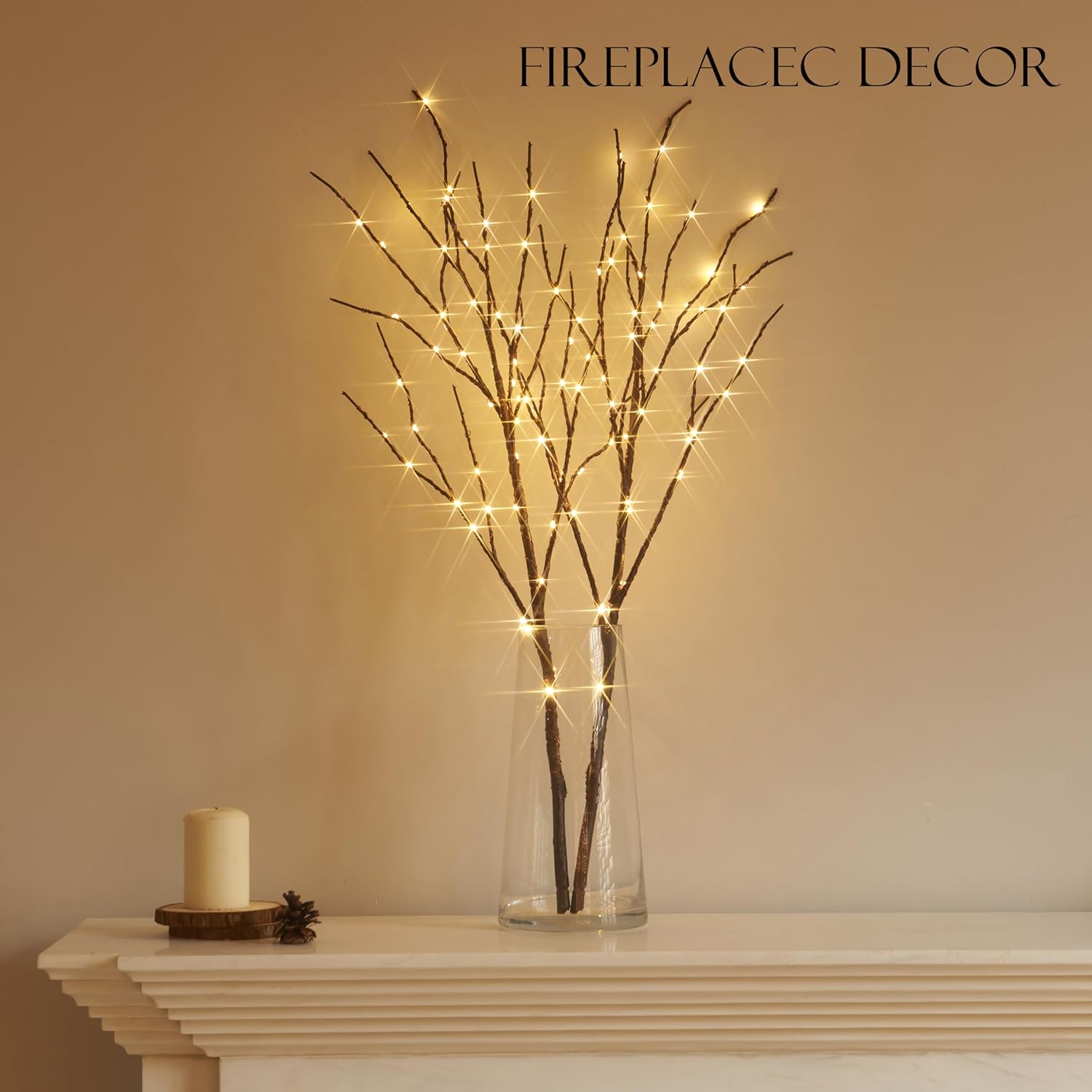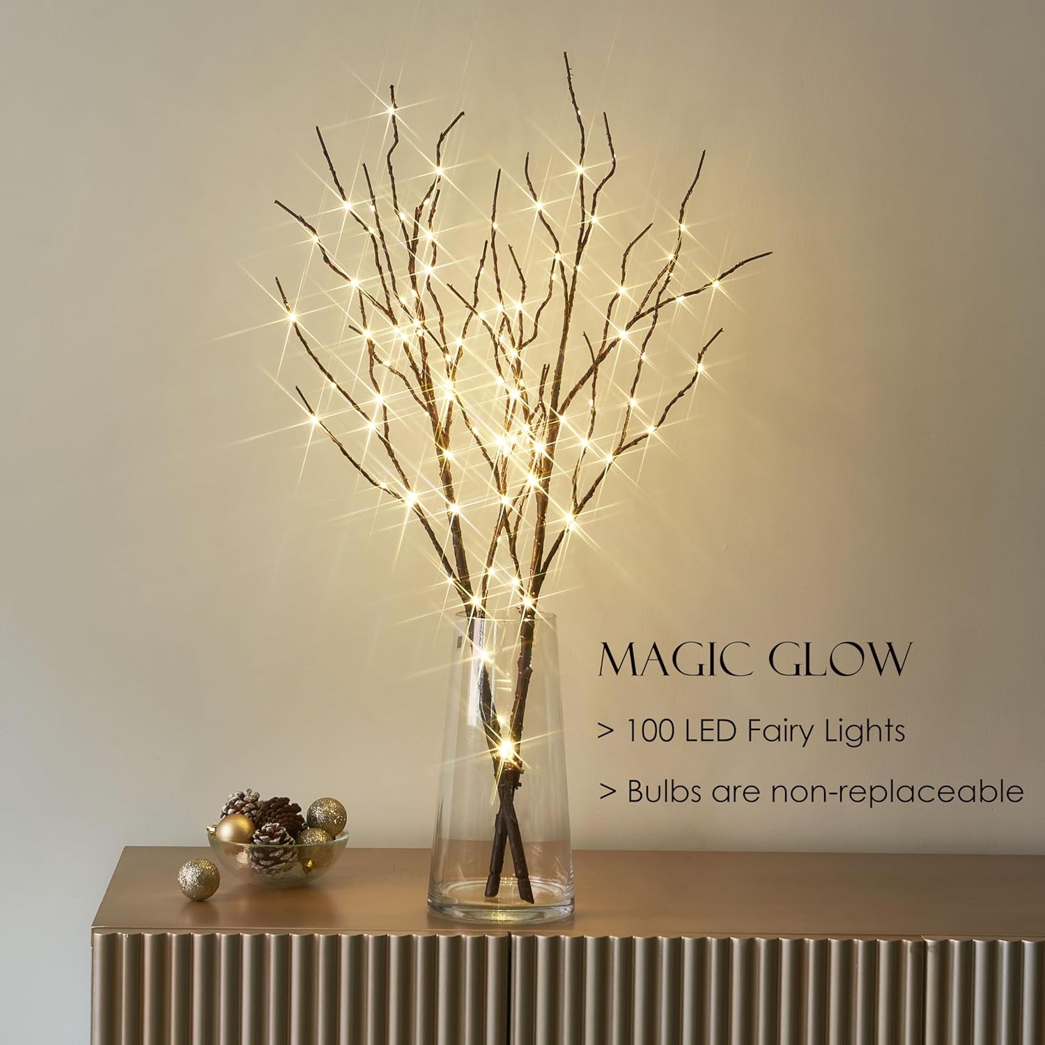 BAOLITVINE Lighted Willow Branches with Timer Battery Operated 100 LED Fairy Lights, Brown Twig Branches 32IN for Home Bedroom Fireplace Christmas Decoration Inside Outdoor
