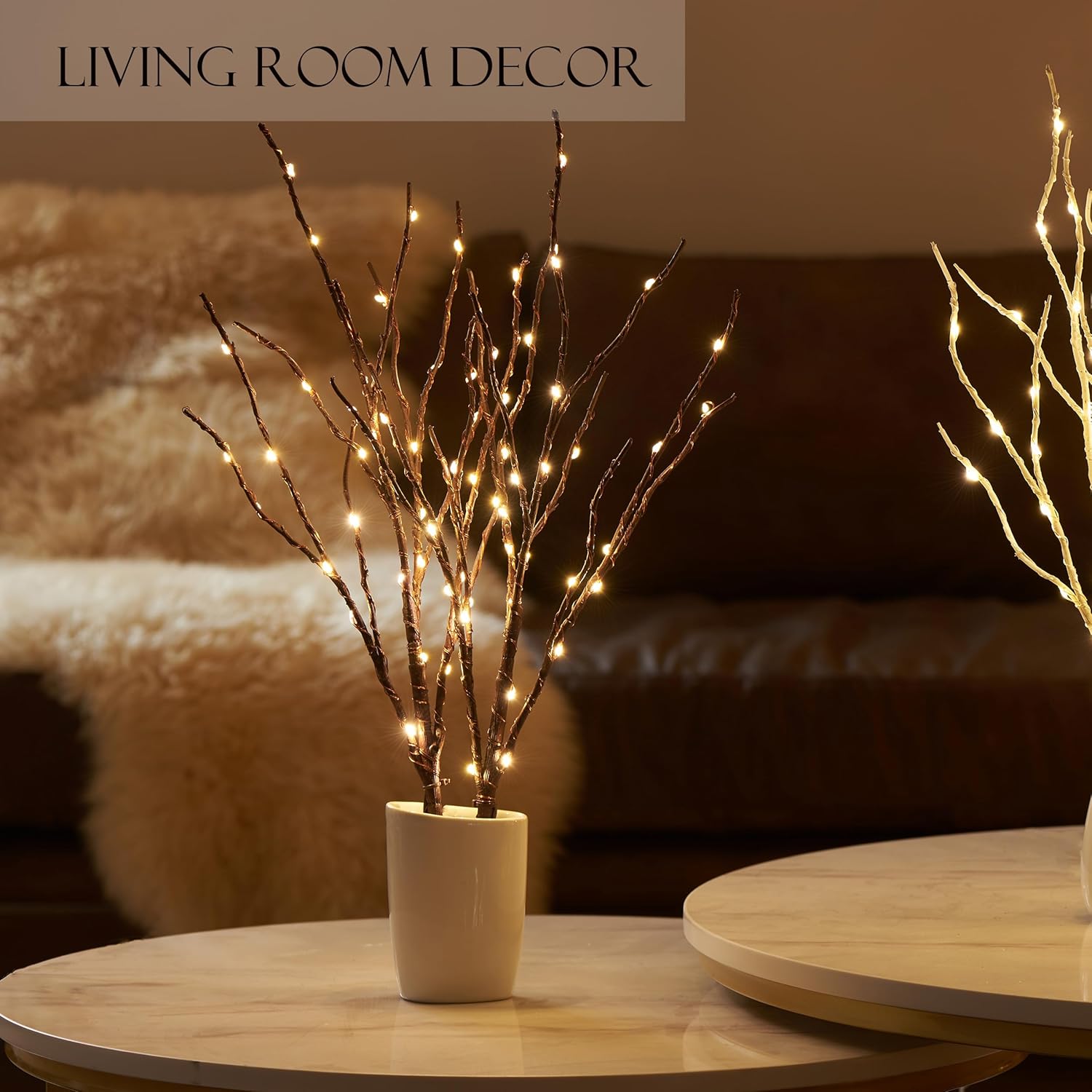 - 【Authentic Look】: Beautifully formed with a natural silhouette, lifelike brown bark finish over lighted twig to bring a magical look inside outside