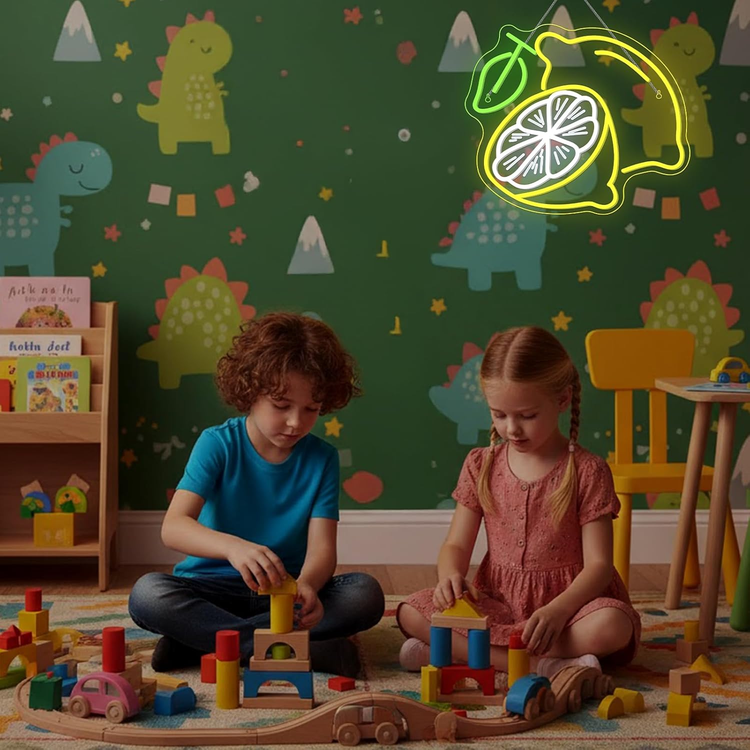 Lemon Cocktail Neon Sign – Yellow & Green LED Wall Light with Citrus Slice and Drink Glass – Summer Party, Bar, Kitchen, and Home Décor