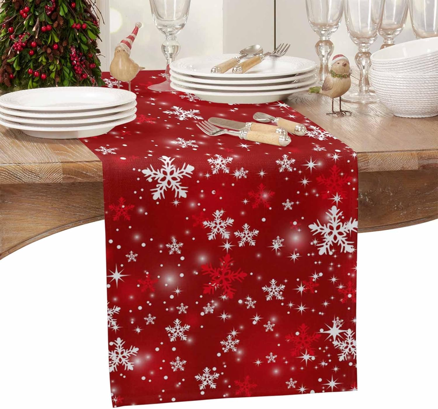 - Bright Home Decor: Christmas table runners is an idea for celebration, daily use, kitchen counters, dining tables, coffee shops, or cozy home decor to elevate your experience in live. Snowflake table runner protects table surfaces from hot pans, sharp utensils, scratches and spills. Christmas decorations indoor with exquisite printing is must -have for party, wedding, banquet, festive and holiday decoration to leave a deep impression on your guests
