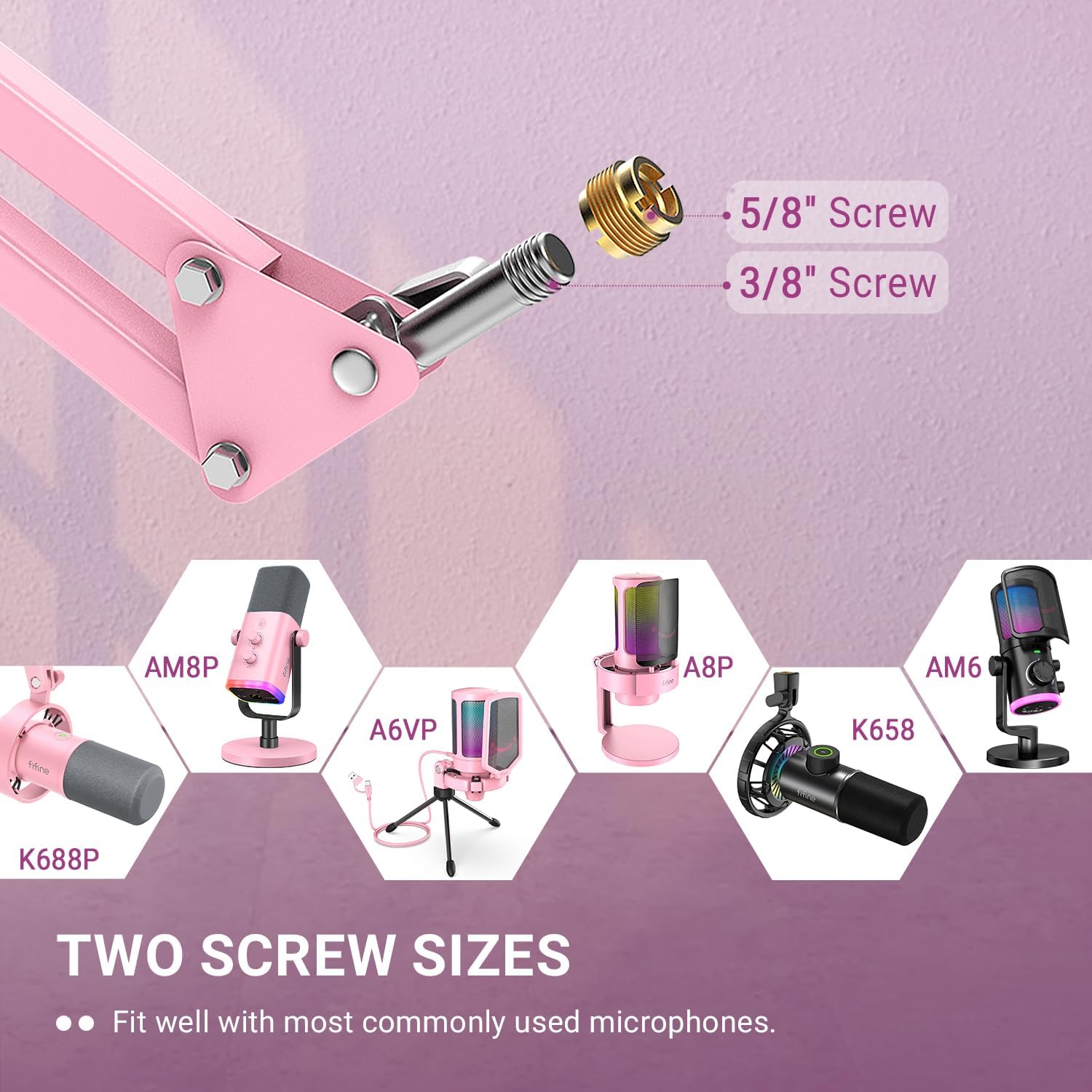 FIFINE Boom Arm Mic Stand, Microphone Arm with Desk Mount for Podcast Streaming Gaming Home Studio, Metal Suspension Scissor Boom Mic Stand-CS1 Pink