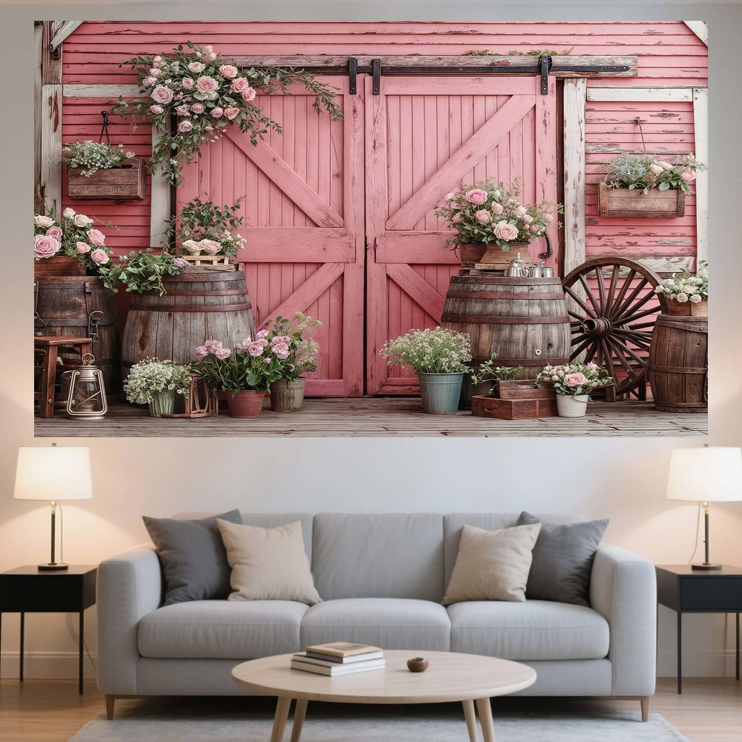 7x5ft Country Wedding Pink Photography Backdrop Rustic Wooden Barn Door Photography Backdrop Farmhouse Flower Western Girl Birthday Baby Shower Wedding Bridal Party Banner Photo Booth Props Background