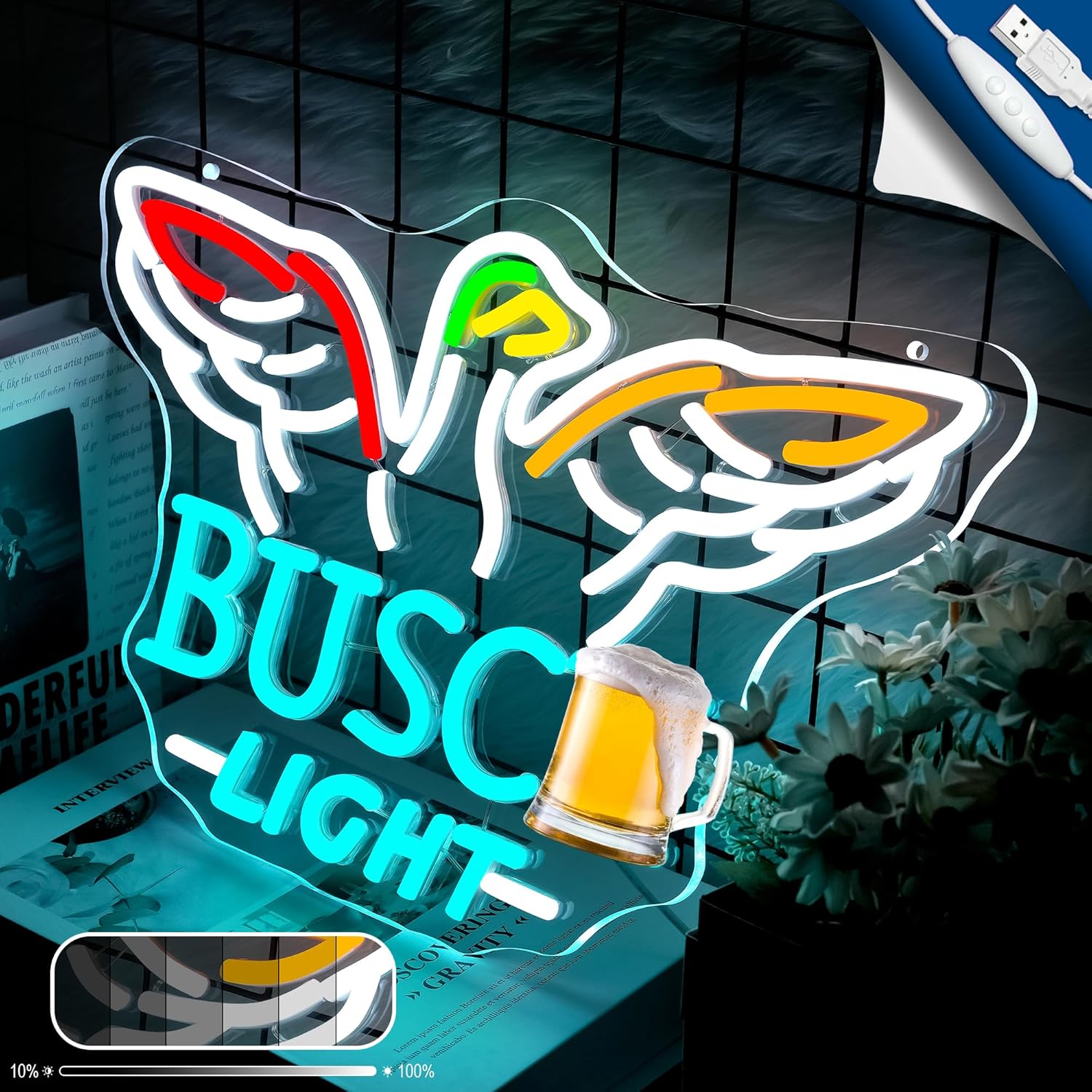 - Effortless Installation: Pre-drilled holes on neon panel enable easy installation with free took kit (chain + screws + 2 adhesive hooks). Securely hang on walls or place on desks/shelves - ready in 60 seconds, zero tools/drilling skills required.