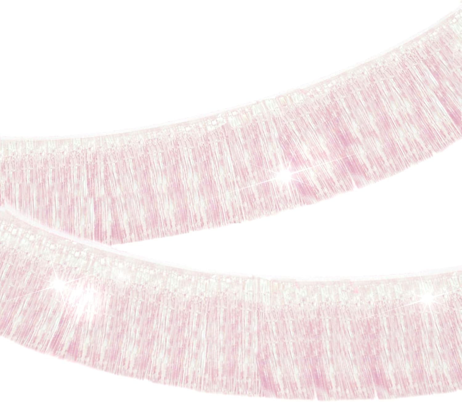 CC Wonderland Iridescent White Fringe Banner - 5 Ft.Pack of 2 for Wedding Hanging Bachelorette Party Decorations, Birthday Party Decor, Baby Shower Supplies, Photo Booth Banner Backdrop