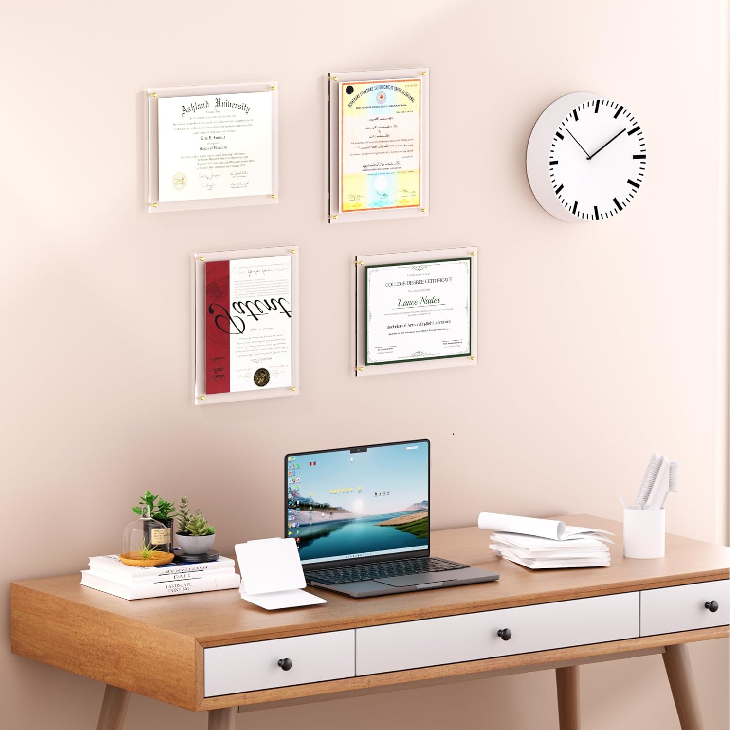 - Dual Panel Design: Two clear acrylic panels sandwich your documents or photos securely while maintaining perfect visibility presentation. The adjustable gap between the two acrylic panels can even accommodate thicker items like small souvenirs or plant specimens.