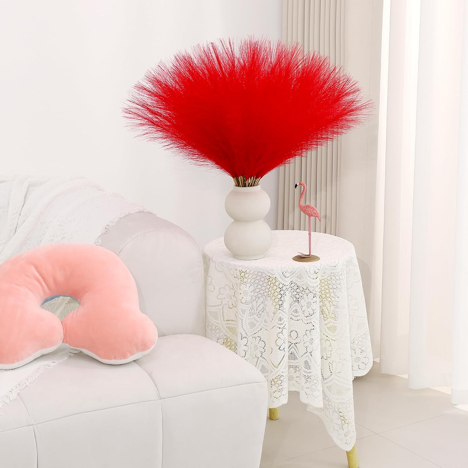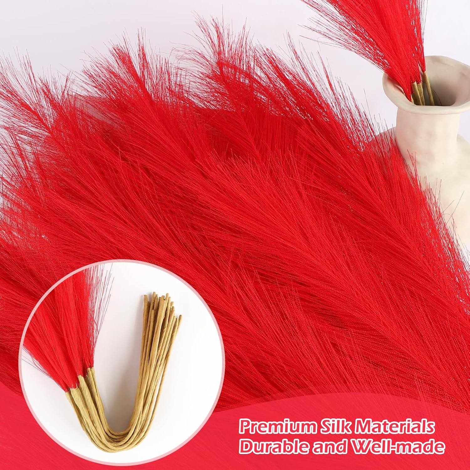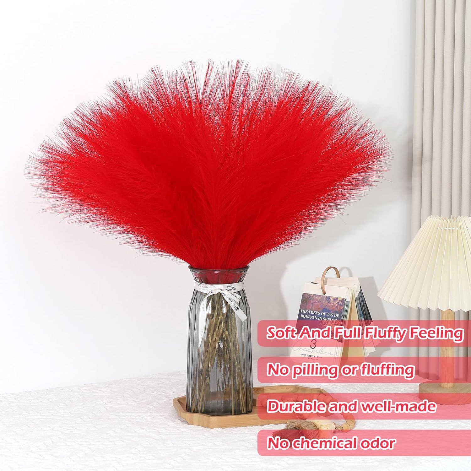 Red Pampas Grass Decor 30 Pcs 21.7 Inch Faux Pampas Grass Bulk Artificial Dried Flowers Small Vase Filler Pompas Grass.
