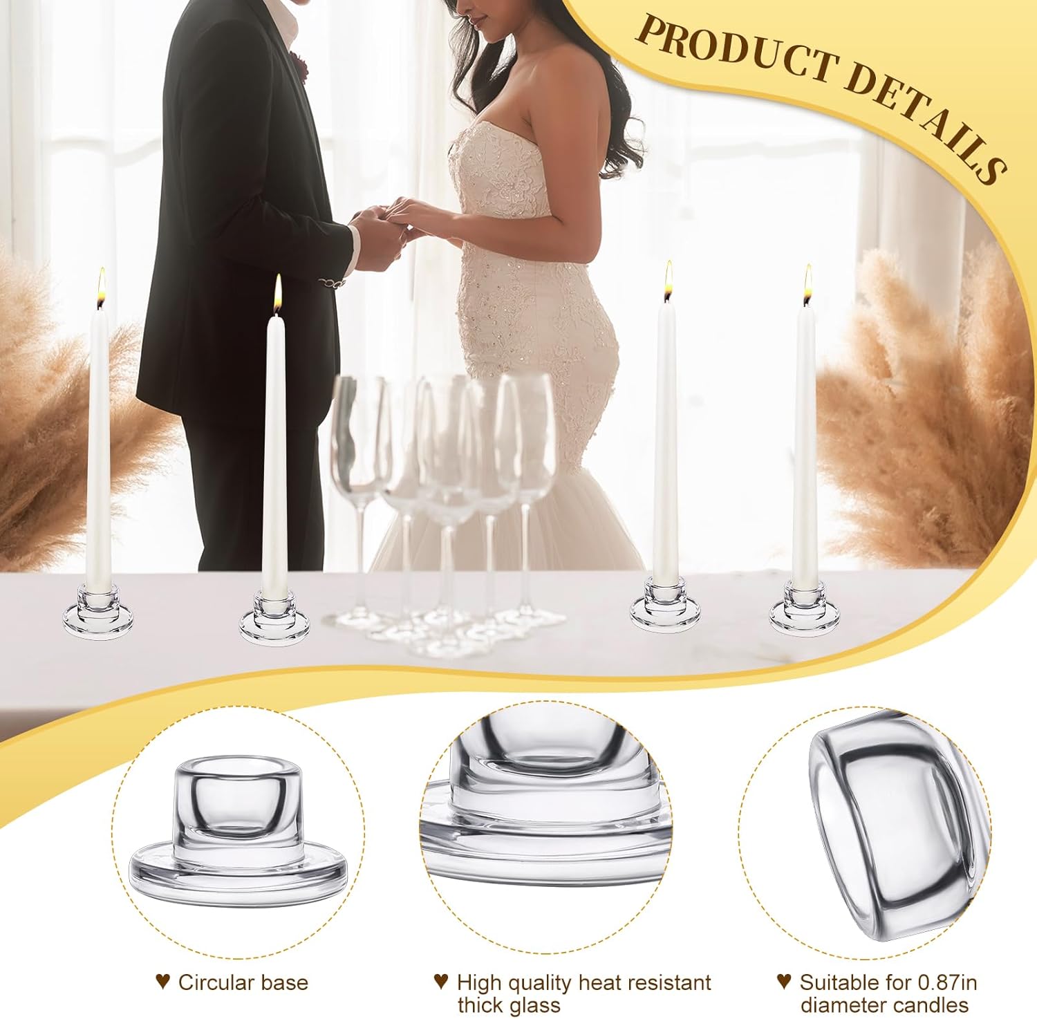 - Mini Candle Holder Design: these 12 pcs mini candle holders boast a classic, pointed candlestick shape crafted from high clarity glass; Their timeless design is nice for coordinating with any decor, accommodating both short and long decorative candlesticks or flameless taper candles effortlessly