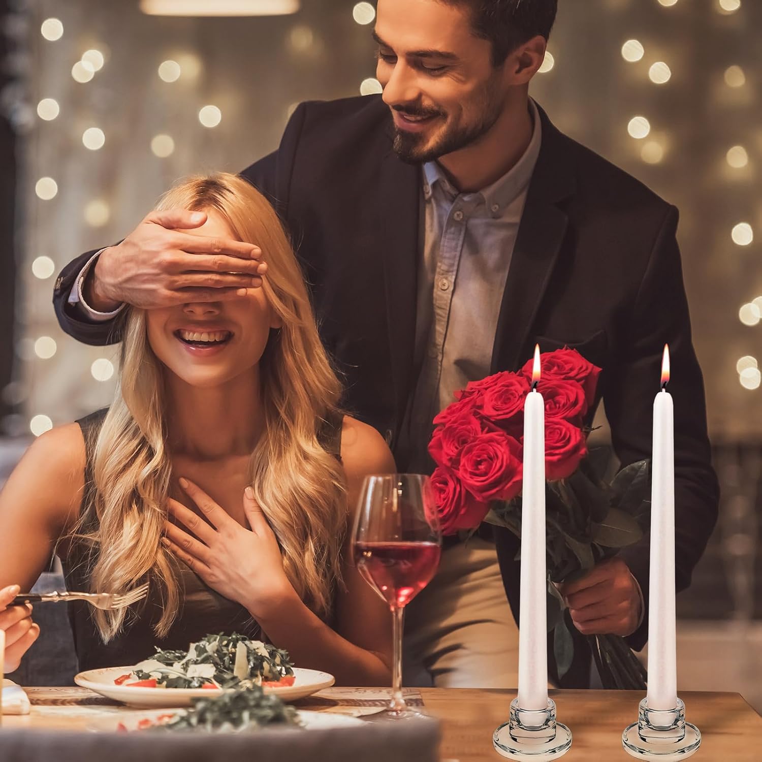 - Well Made Glass Construction: constructed from thick glass, these candle holders offer quality with appeal; Their lightweight build and wide base prevent tipping, while the smooth texture showcases fine workmanship; A 0.9" candle socket ensures a fit for taper candles all year round