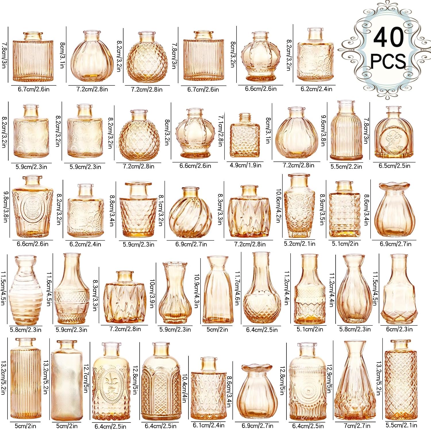 Bud Vases Set of 40 Pcs,Small Flower Vases for Centerpieces,Glass Bud Vase in Bulk,Vintage Bud Vase for Wedding Table Centerpieces Decoration, Home Table Party Decor, Christmas,Anniversary,Gold Amber