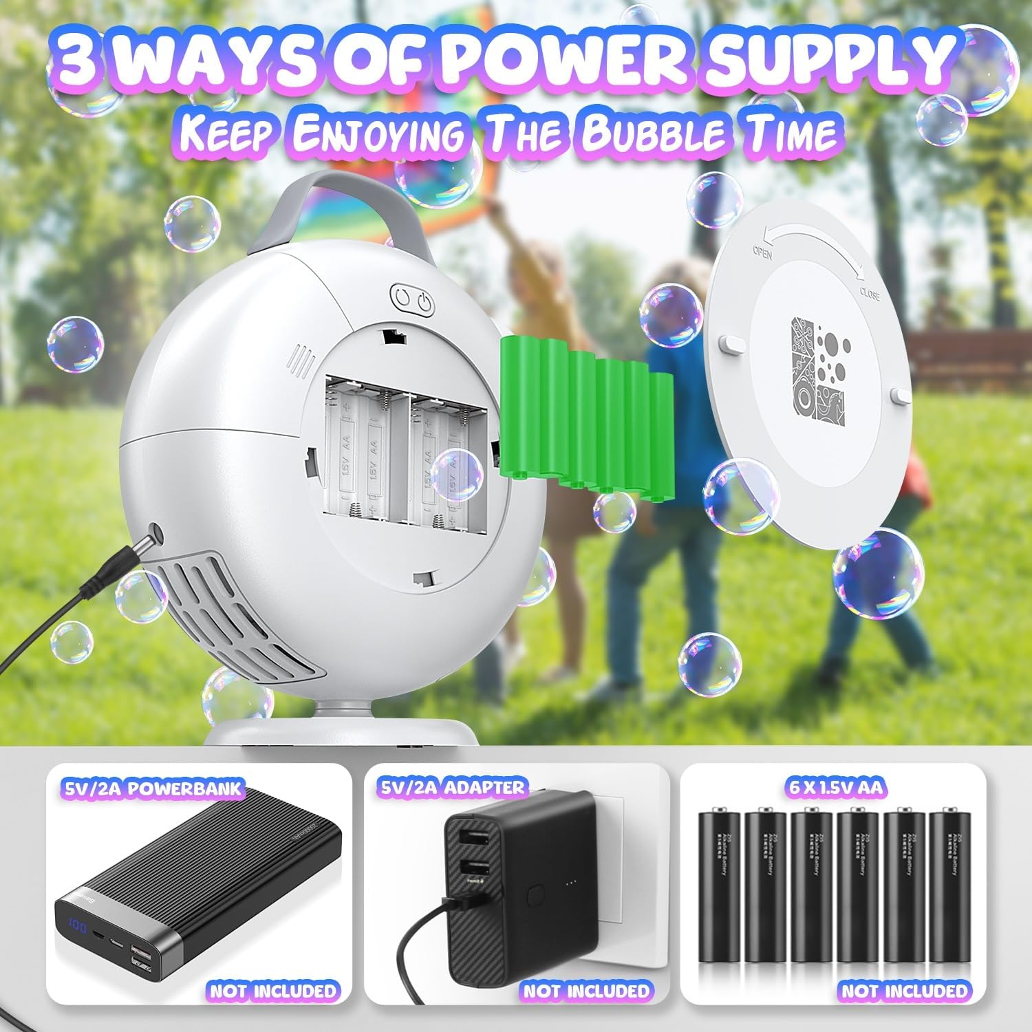 - 【Three-ways Powered Option】This electric bubble machine provides three power options - plugin, use batteries, or take it anywhere with a power bank! Whether indoors, outdoors, or on the move, brace yourself for limitless bubble fun with this professional bubble machine.